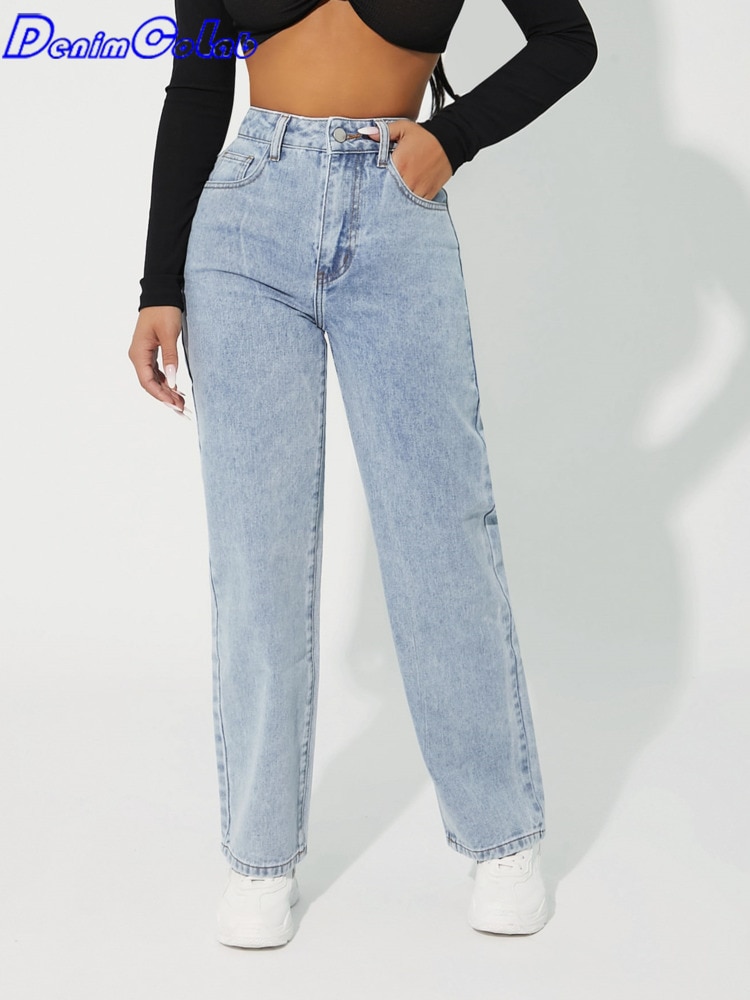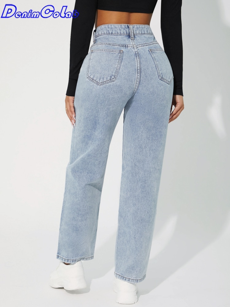 Denimcolab 2023 New High Waist Straight Leg Jeans Woman Simple Style Casual Cotton Denim Pants Ladies Loose Streetwear Jeans