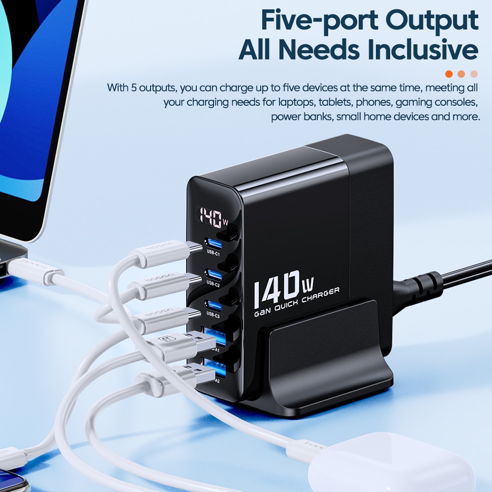 Toocki GaN Charger 140W 100W 65W LED Display Laptop Desktop USB C Charger For iPhone 12 13 Xiaomi Charging Station Fast Charger