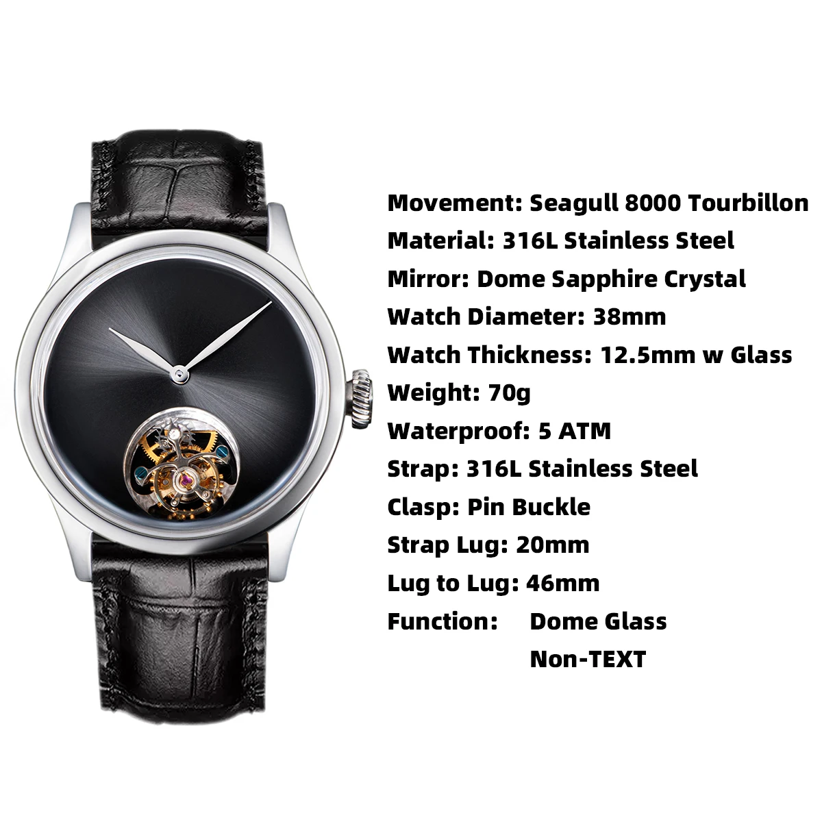 Movement: Seagull 8000 Tourbillon