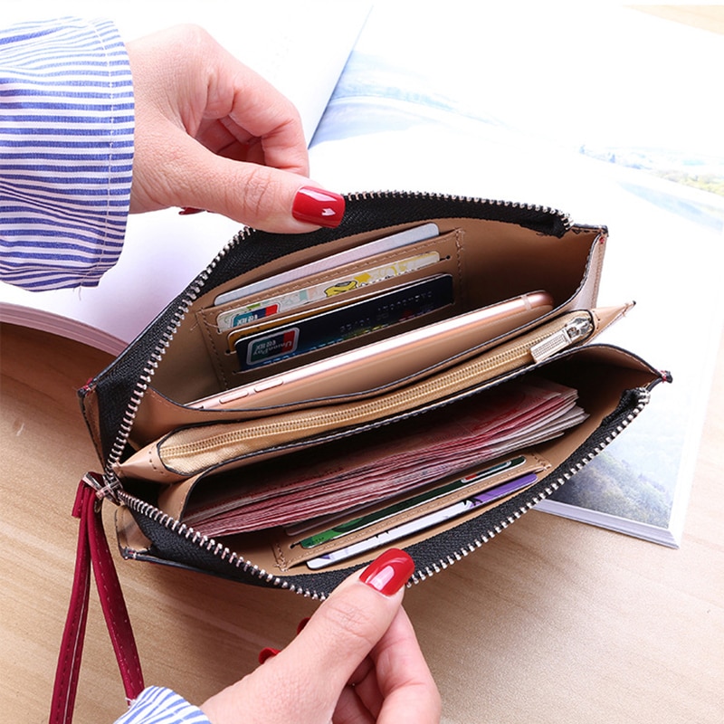 Women's Vintage Oil Wax Leather Zipper Clutch Wallet Female Large Capacity Coin Purse Ladies Wristband Simple Card Holder Wallet