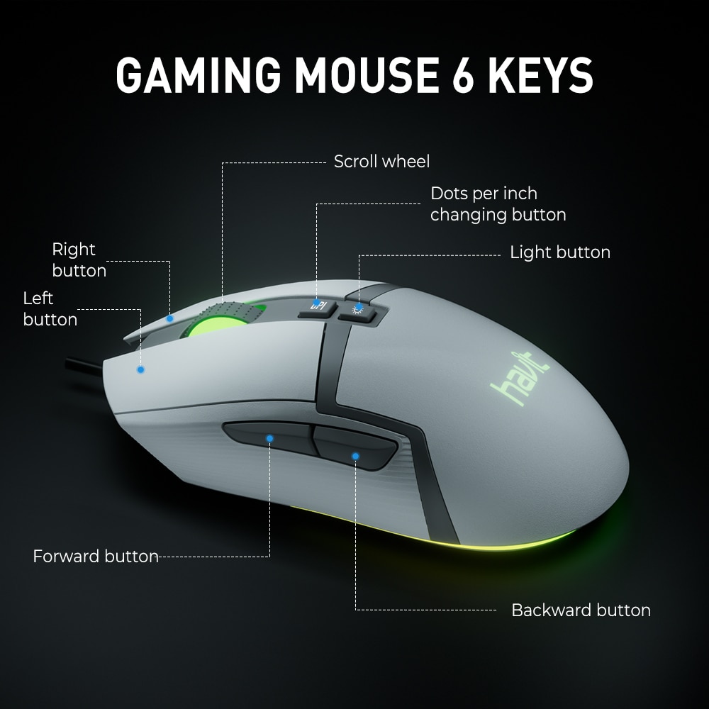 HAVIT MS885 RGB USB Wired PC Gaming Mouse 6400 DPI 6 Button Mice with 7 Color Backlight Programmable Ergonomic for Laptop Gamer