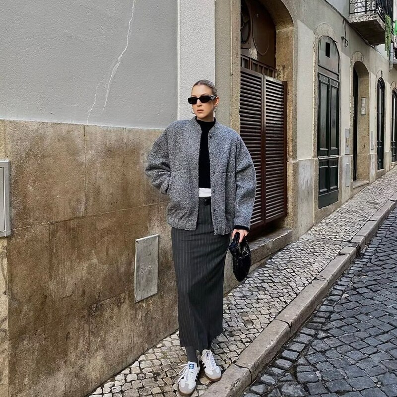 Gray Casual Jacket Women Fashion Chic Lady Long Sleeves Mock Neck Warm Thick Coat Top Female Fall Winter Clothing