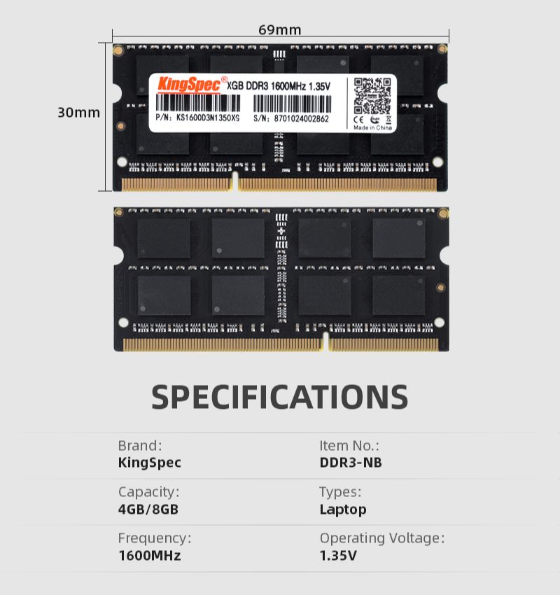 KingSpec DDR3 4GB 8GB Memory RAM Laptop 1600 Sodimm Memory Ram For Laptop Memoria Rams 1600MHz Ddr3 1.35V Notebook