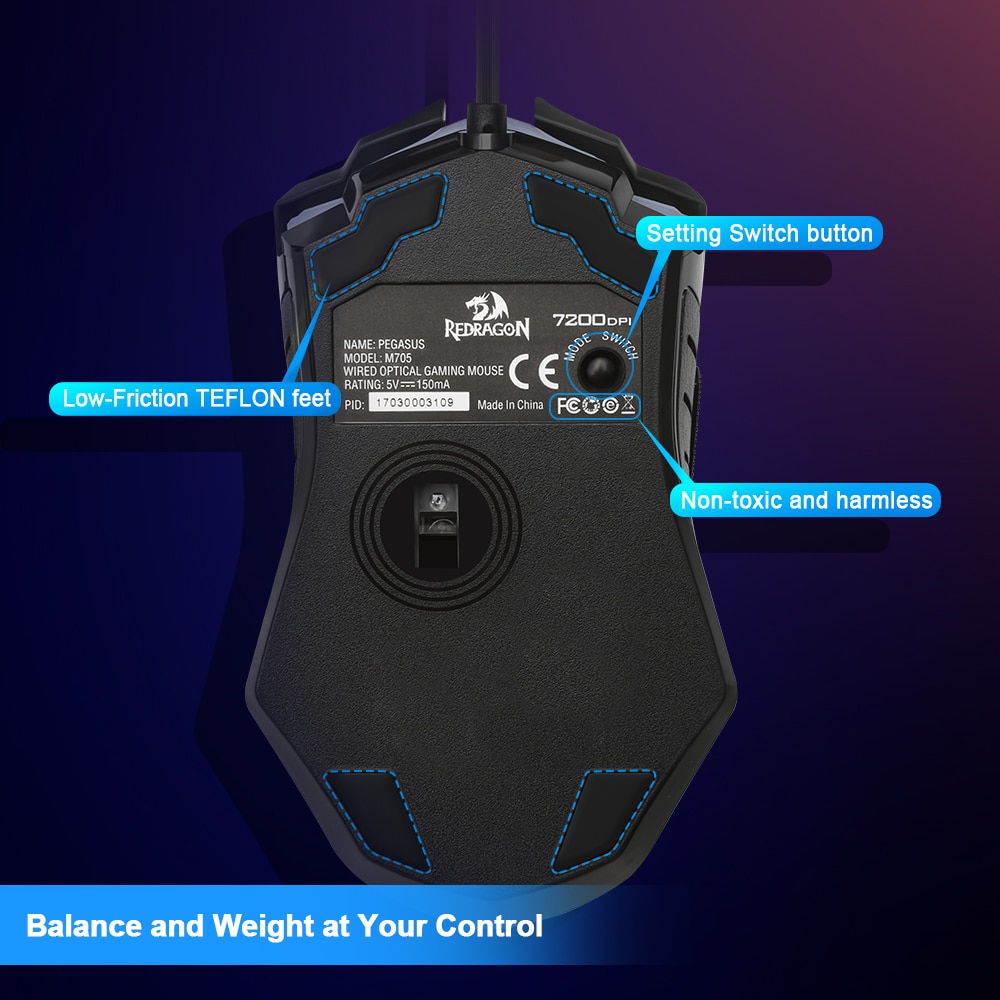LED Customized colors Backlight, Chroma lighting and breathing effects, featuring user adjustable DPI 7200 (5 Level adjustable 800/1200/1600/2400/7200),1000Hz polling rate, quickly adjustable for different gaming scenarios
