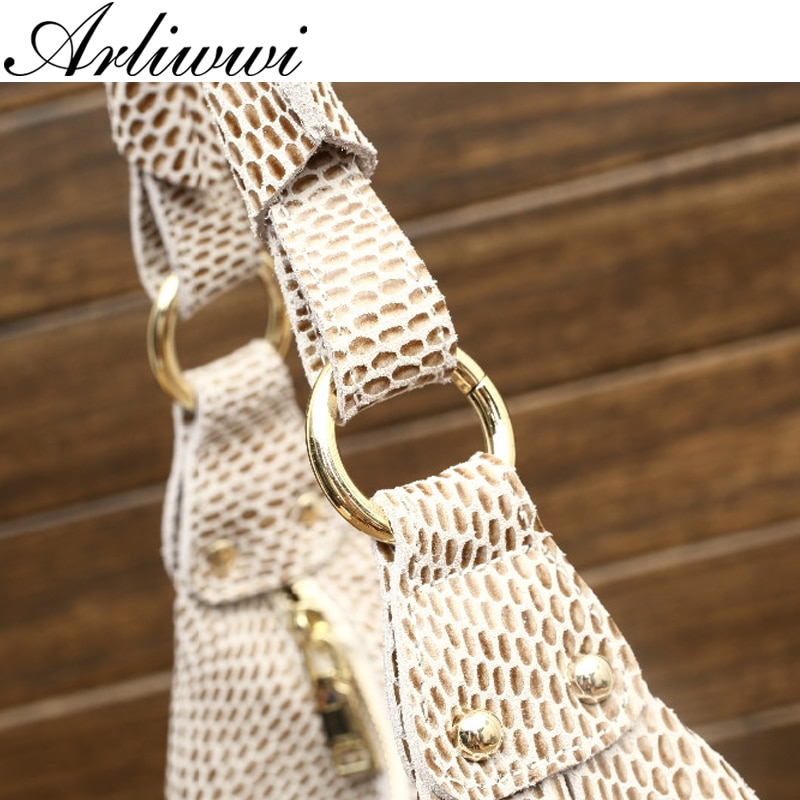 Arliwwi 100% Genuine Leather Shiny Serpentine Shoulder Bags Big Casual Soft Real Snake Embossed Skin Large Bag Handbags Women
