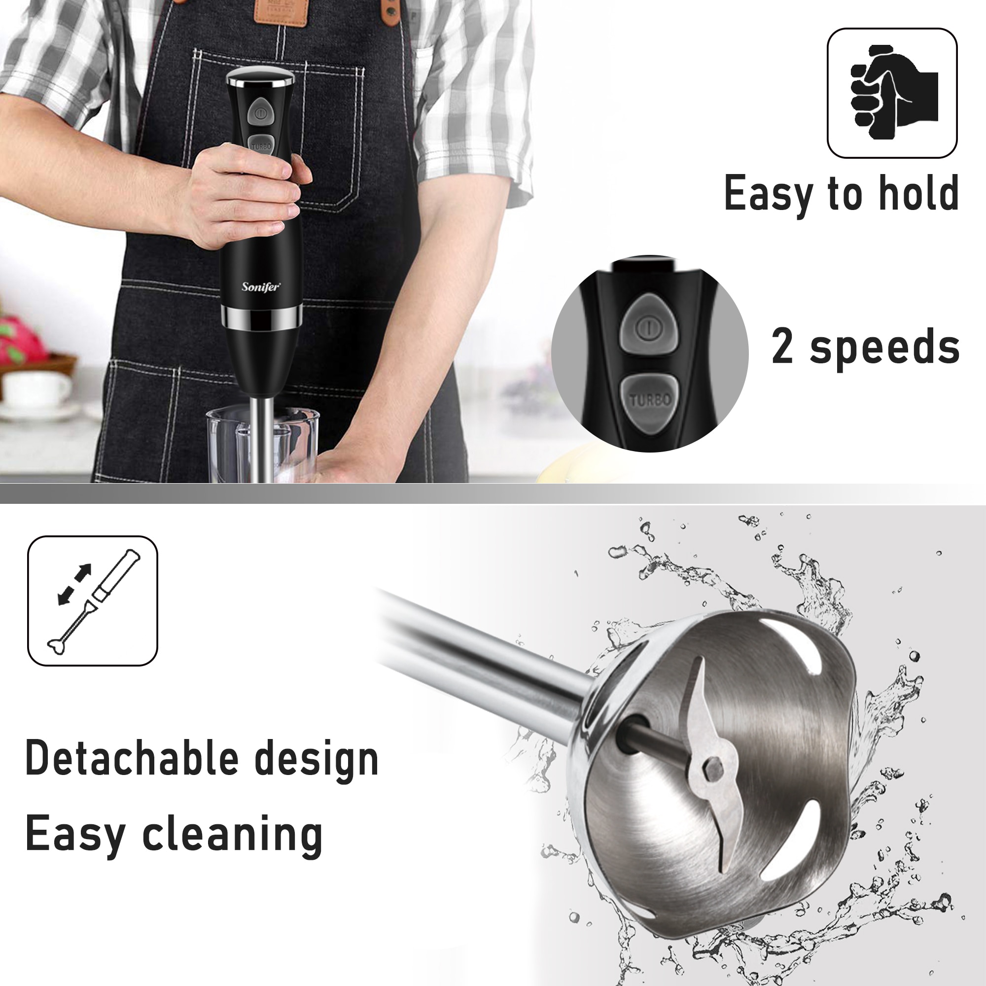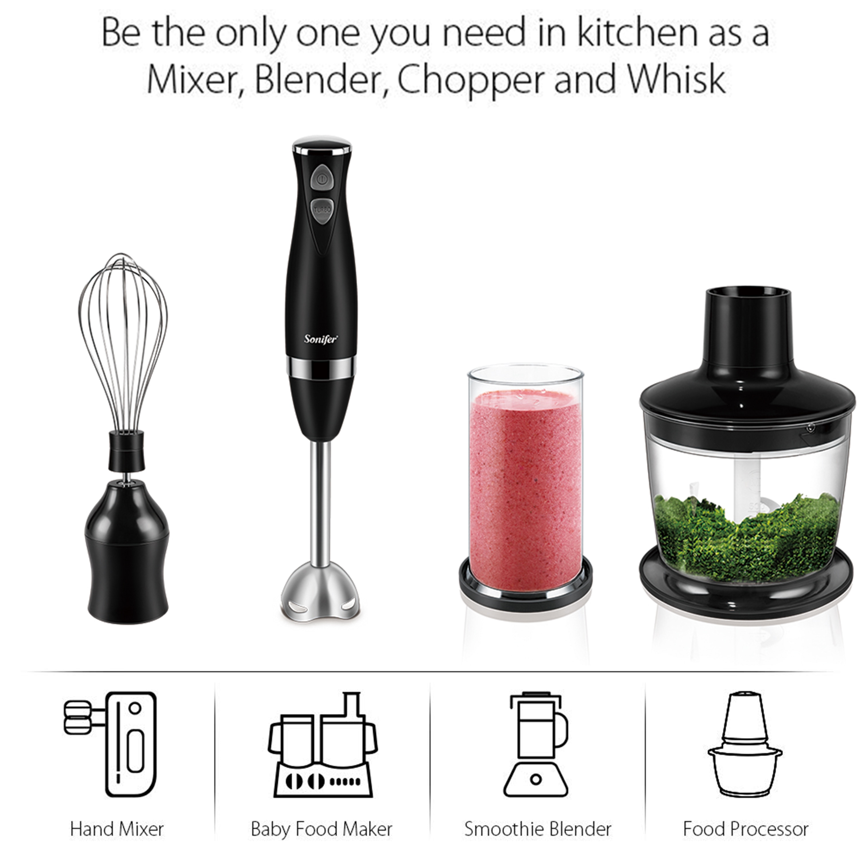 Stainless Steel Hand Blender 3 In 1 Immersion Electric Food Mixer With Bowl Kitchen Vegetable Meat Grinder Chopper Whisk Sonifer