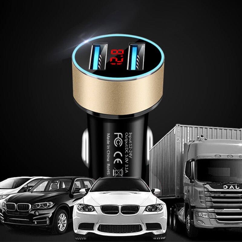 Dual USB Socket 3.1A Phone Charger Cigaretter Light Plug Power Adapter 2 Ports USB Digital LCD Voltage Display for 12V 24V Cars