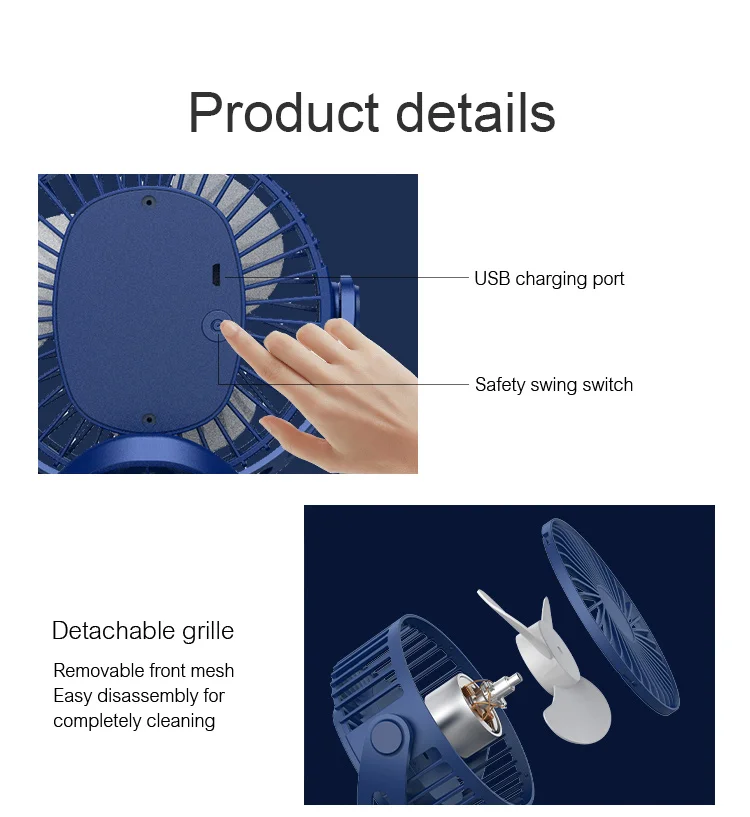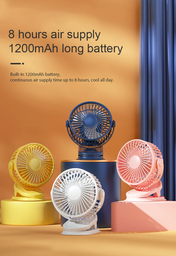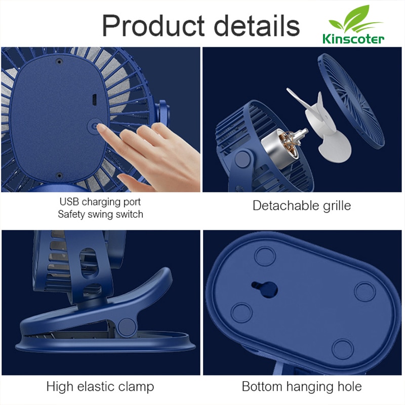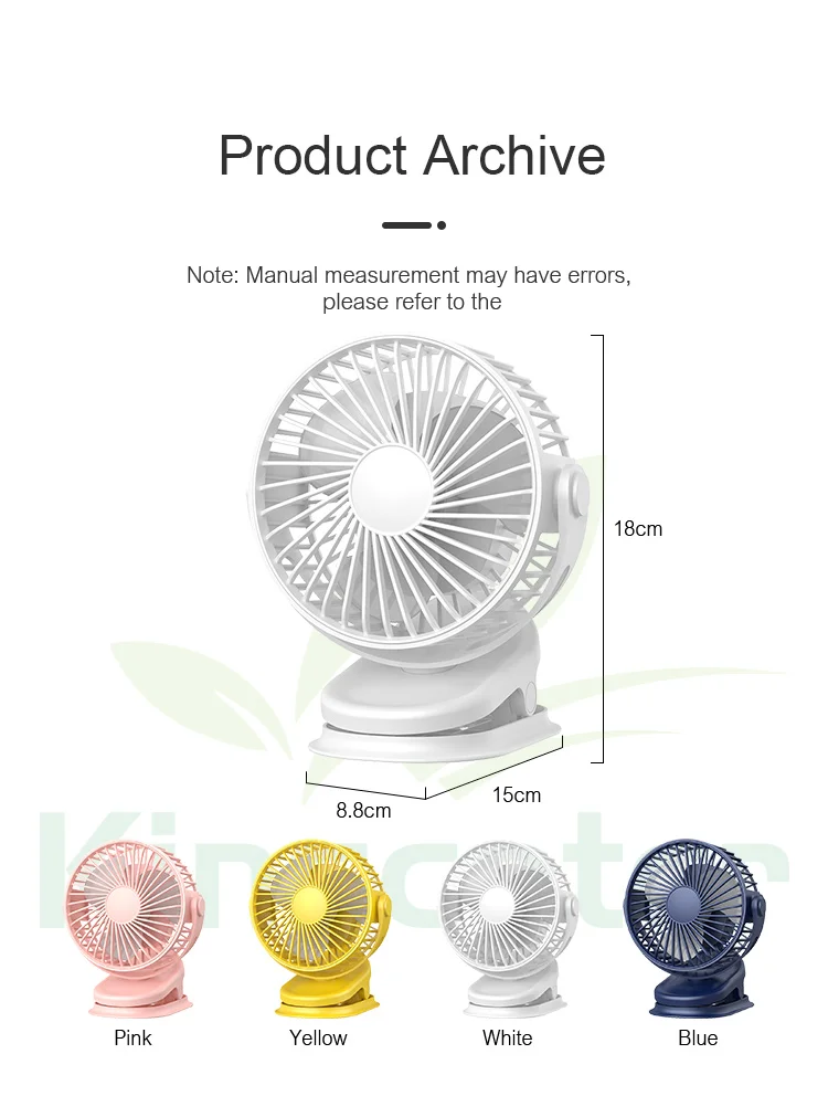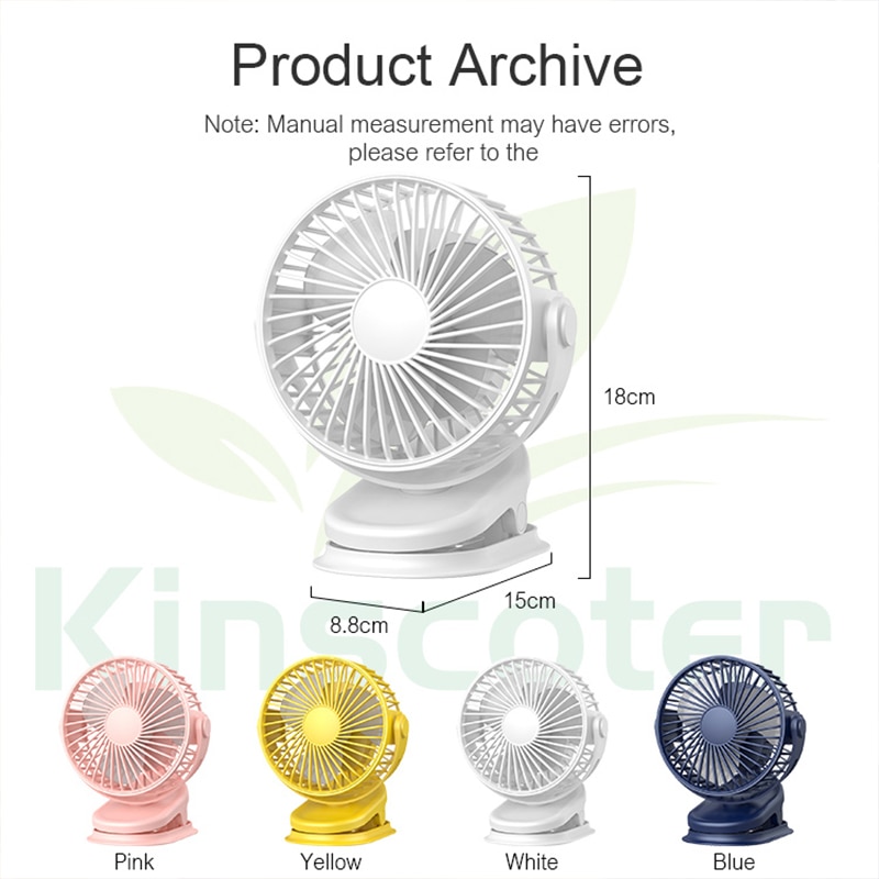 Kinscoter Mini USB Fan Rechargeable Battery Fan with Timer Strong Wind 3 Speed Desktop Portable Quiet Office Camping Outdoor