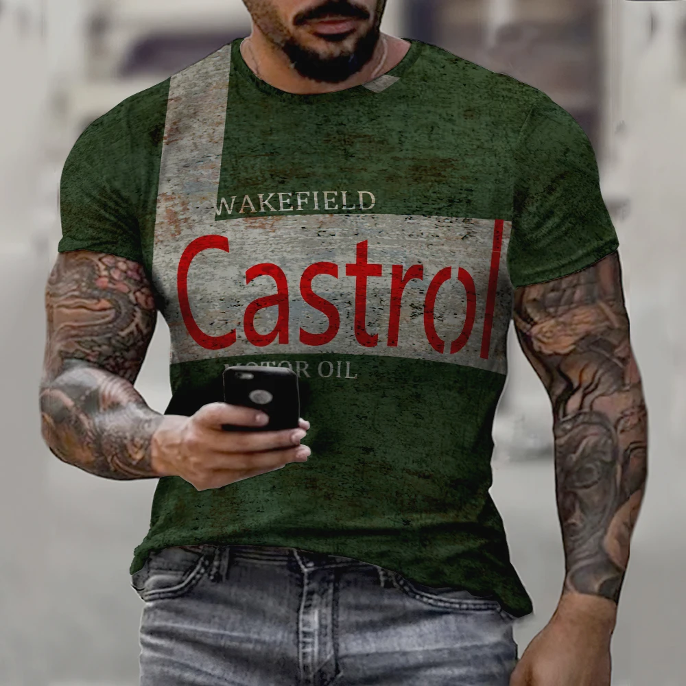 Vintage Men's T Shirt 3d Printed Castrol T-shirt Gulf Oil Racing Tops Tees Biker Short Sleeve Oversized t shirt Man Camisa