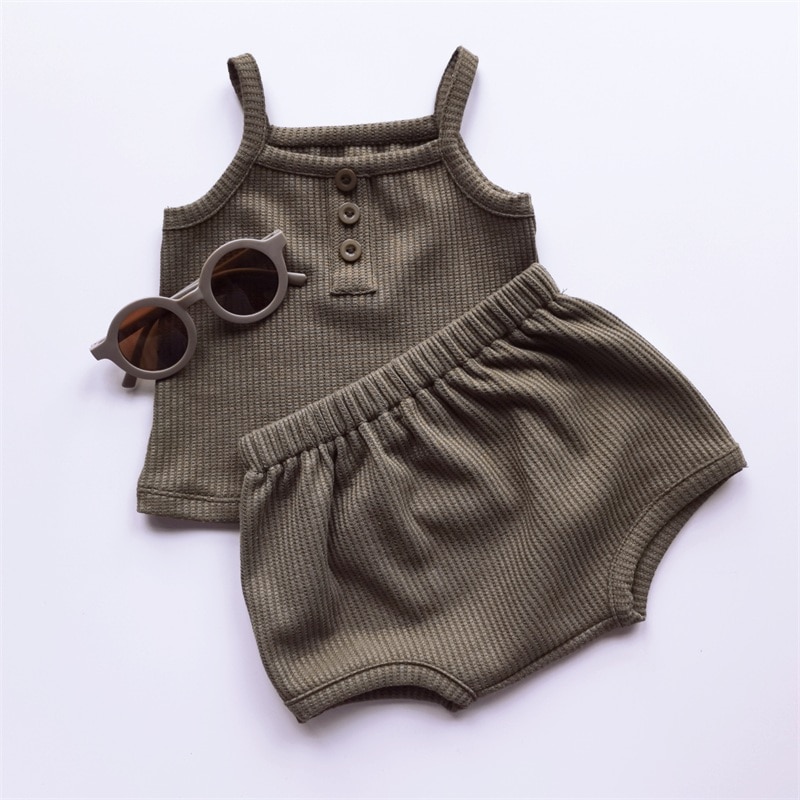 Baby Clothes Sets Summer Toddler Girl Strap Suits Cotton Solid Baby Boy Tops Tee and Shorts Infant Tracksuit Newborn Sets