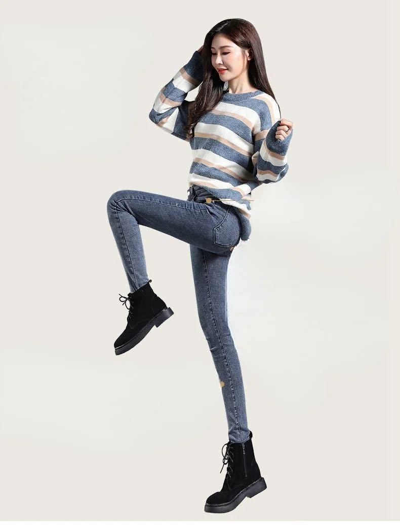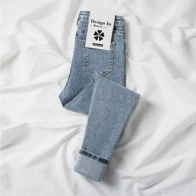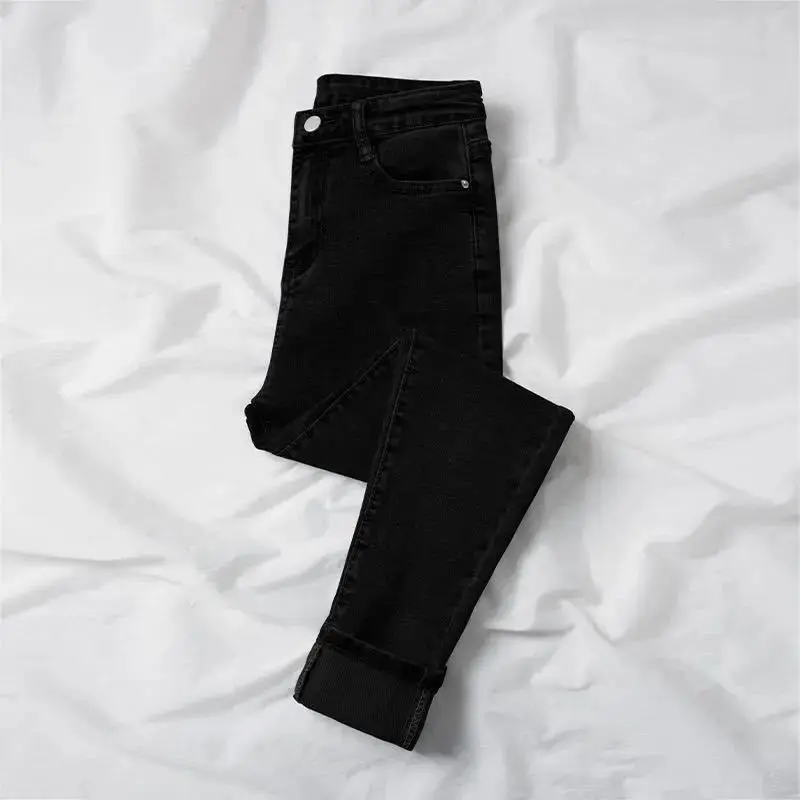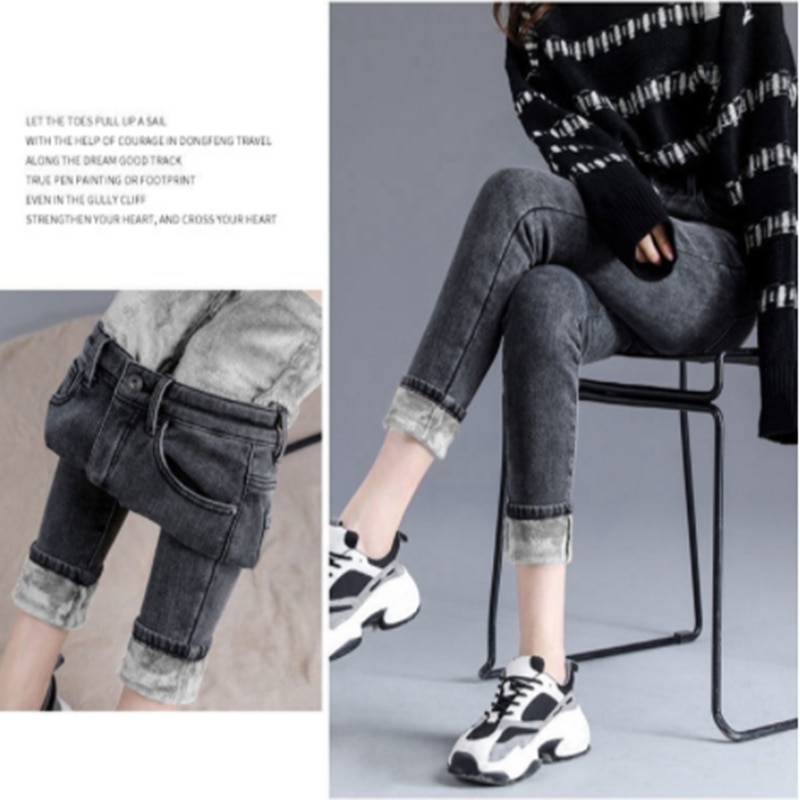 Spring Autumn and Winter Skinny Warm Jeans Women Velvet Ankle Length Casual Thick Pencil Pants Basic Fleece Denim Trousers