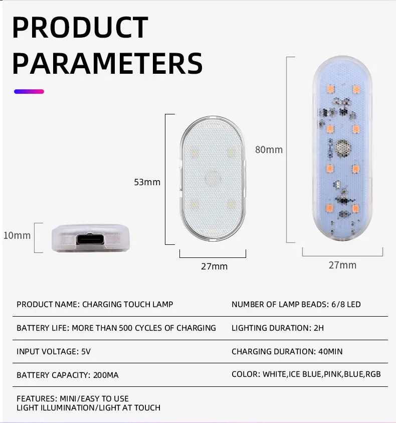 Package includes: 1pc USB rechargeable touch reading light (including data cable)