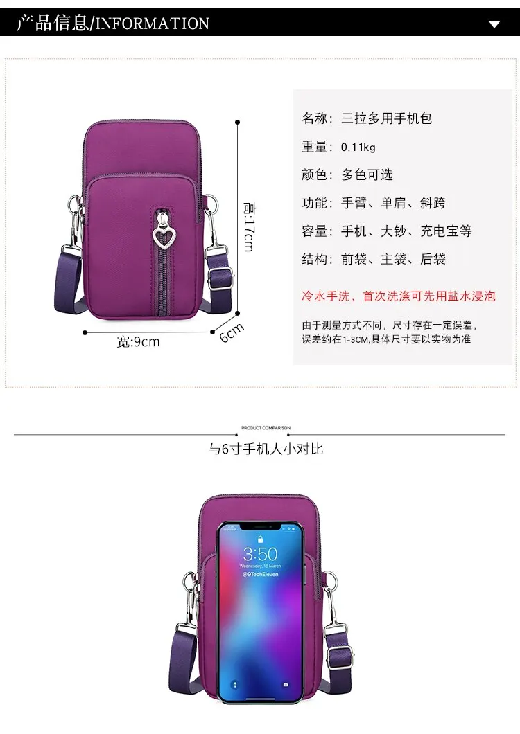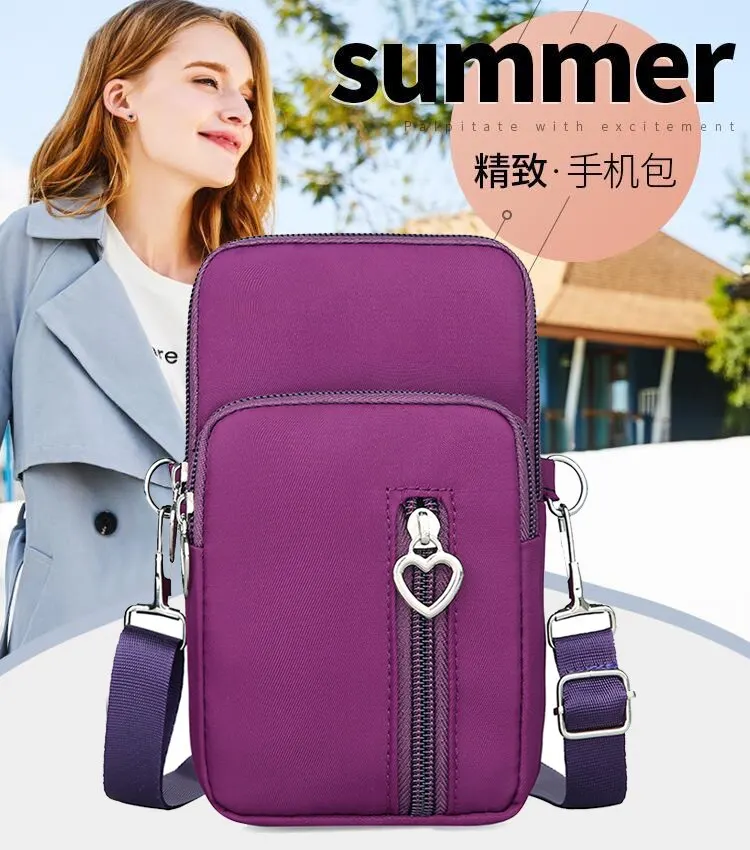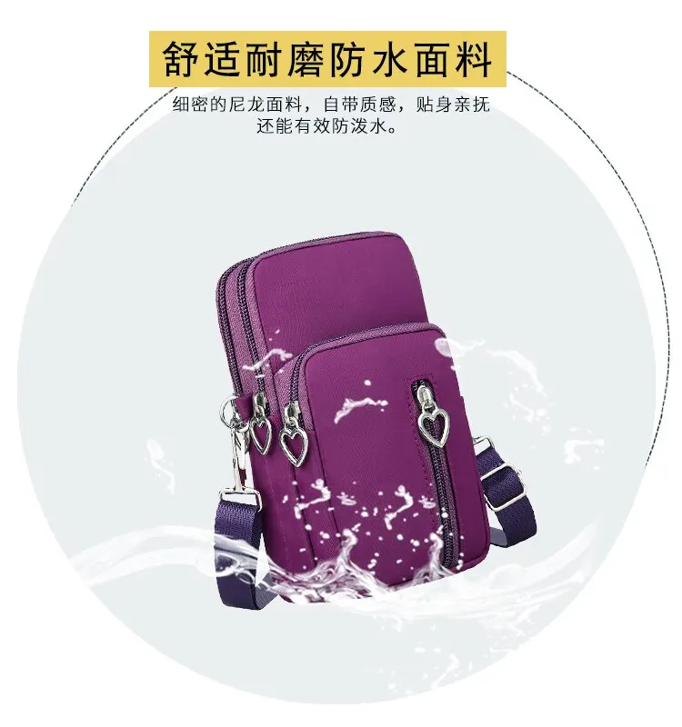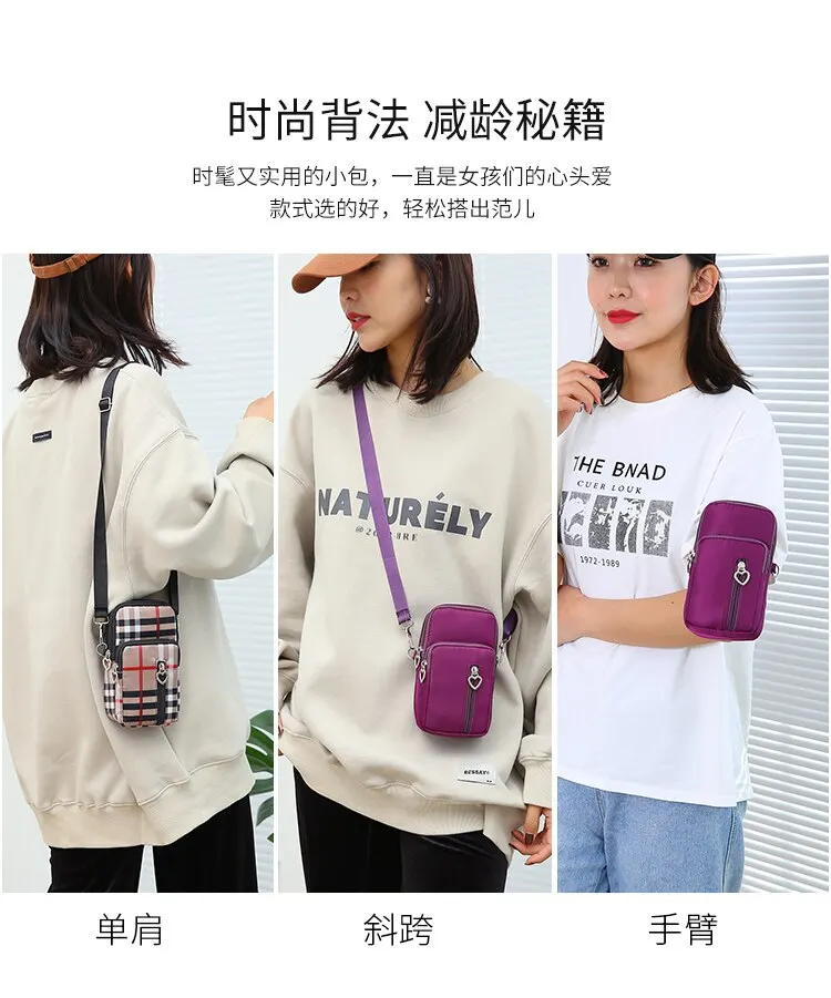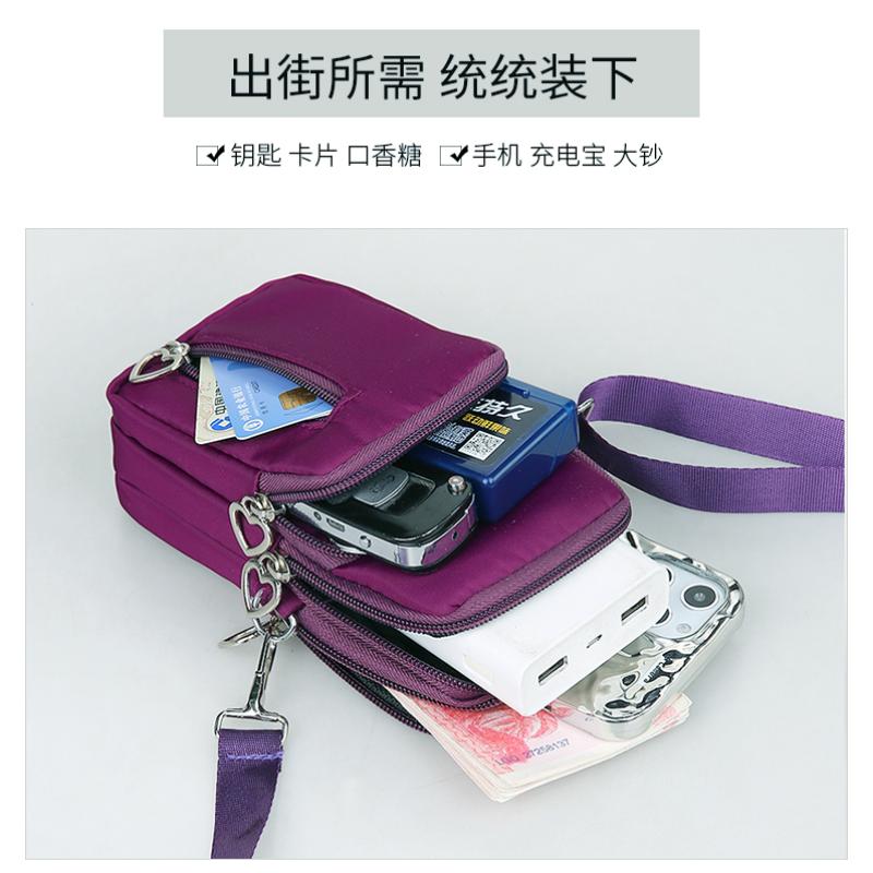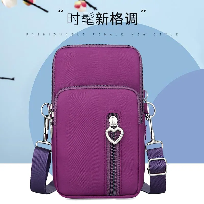 New Mobile Phone Female ThreeLayer Mini ShoulderMessenger Wrist Change Key Storage Arm Bag