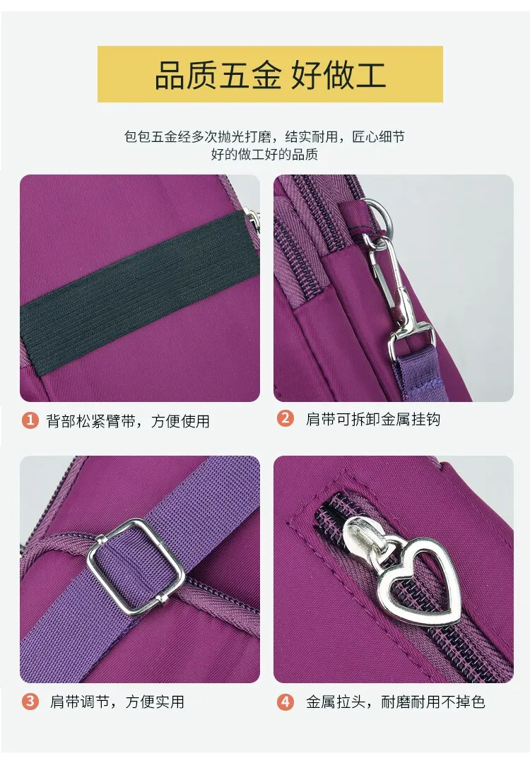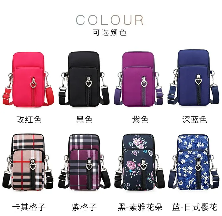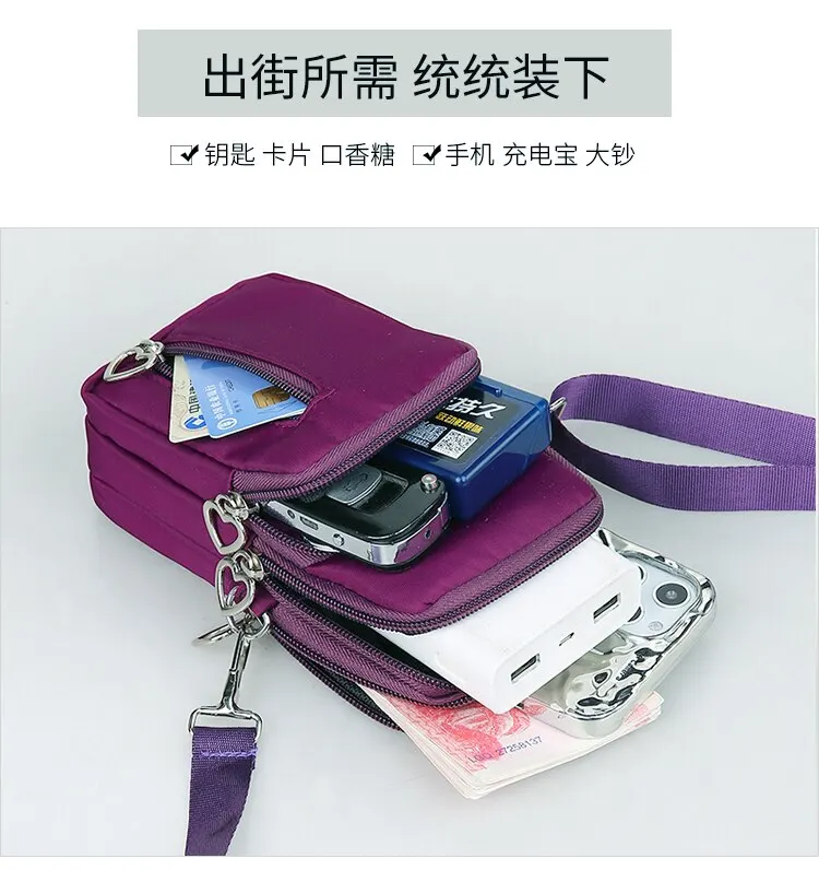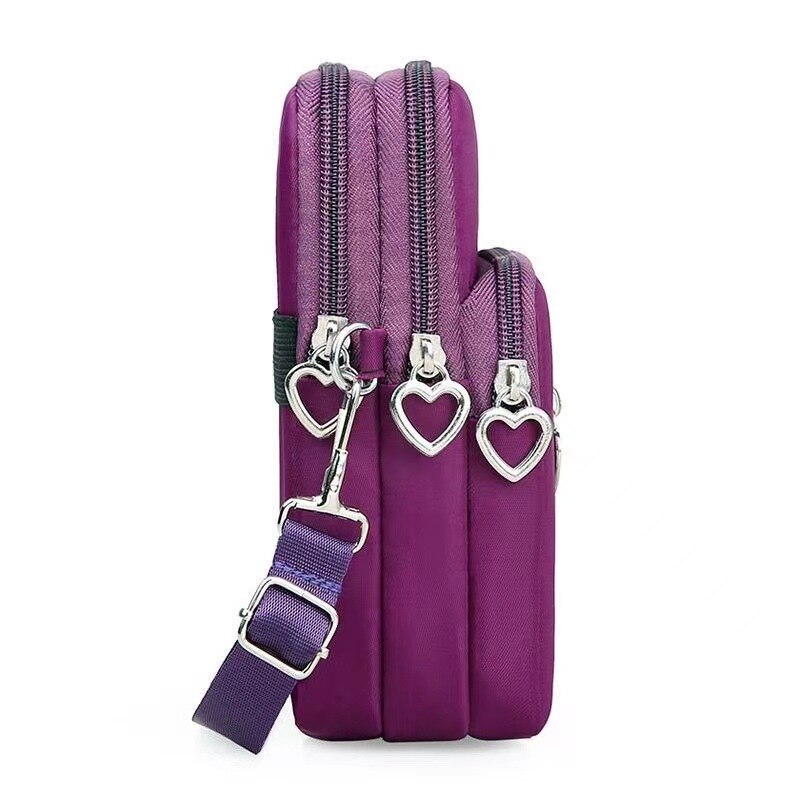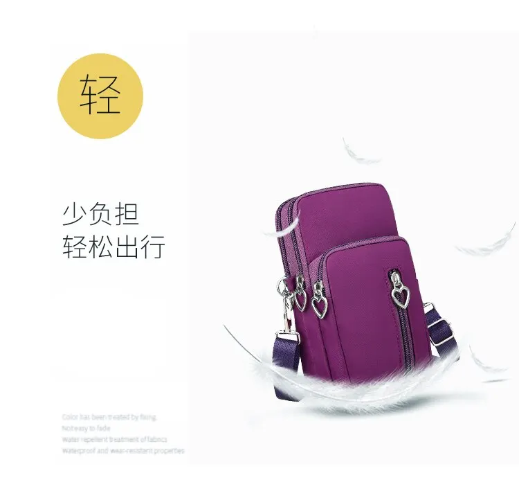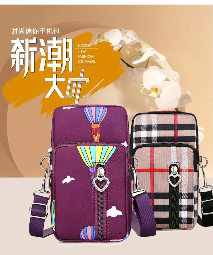 New Mobile Phone Female ThreeLayer Mini ShoulderMessenger Wrist Change Key Storage Arm Bag
