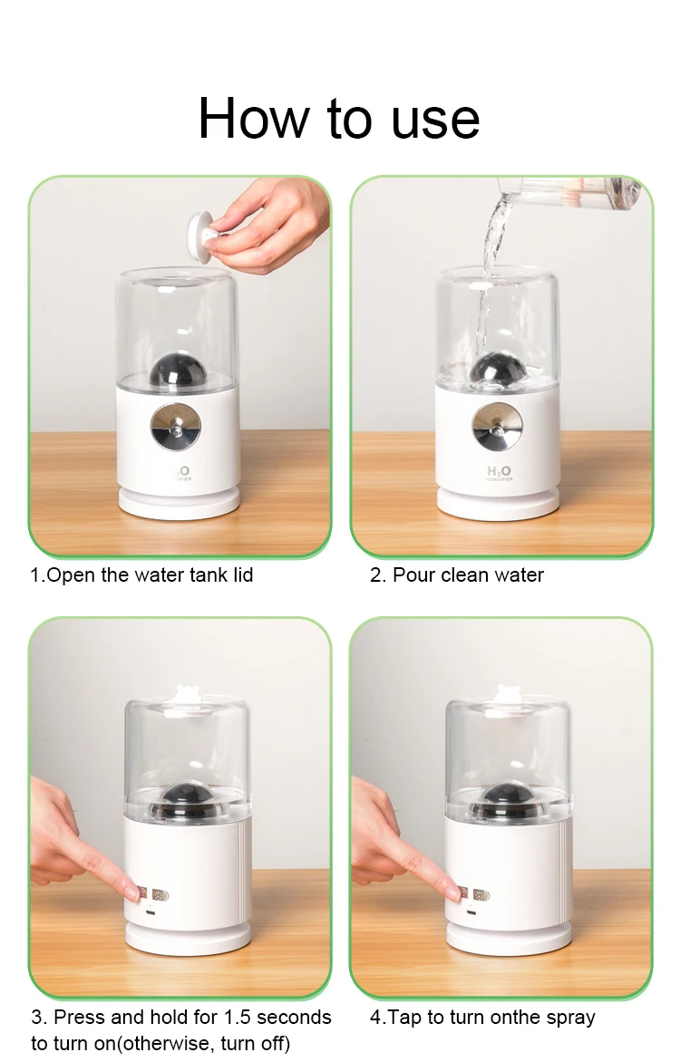 1, Built-in 2000mAh battery, portable humidifier, moisturizing the skin anytime and anywhere;