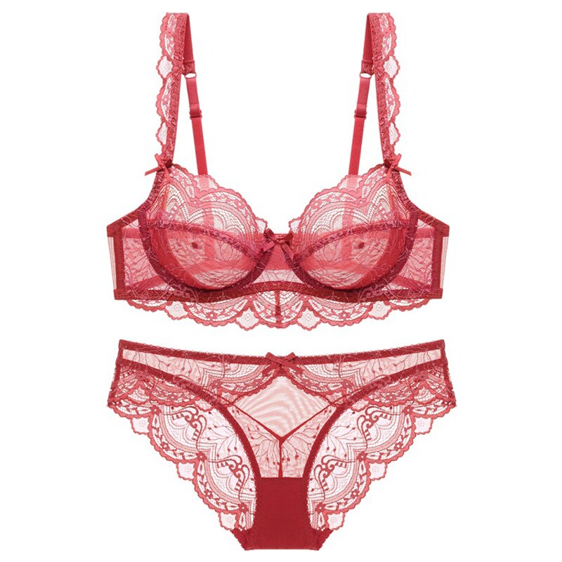 New Top Ultra-thin Women's Underwear Set Push Up Bra And Panty Sets Black Hollow Brassiere Gather Sexy Bra Lace Lingerie Set