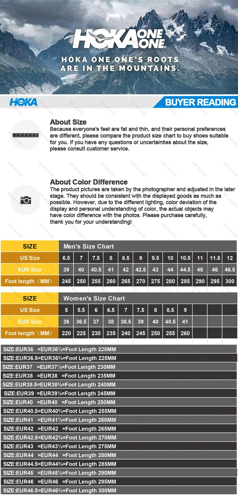 2.If one of your feet is bigger or longer than another, you must choose the size that fits your biggest foot.