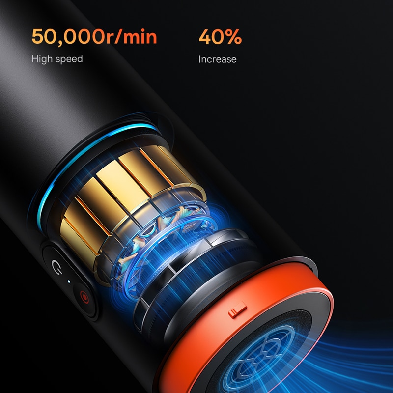 High-speed noiseless motor, linear design for the air vents, less wind power loss, 40% higher suction force than before