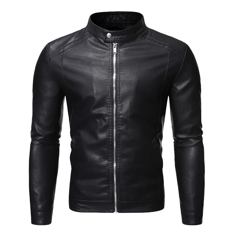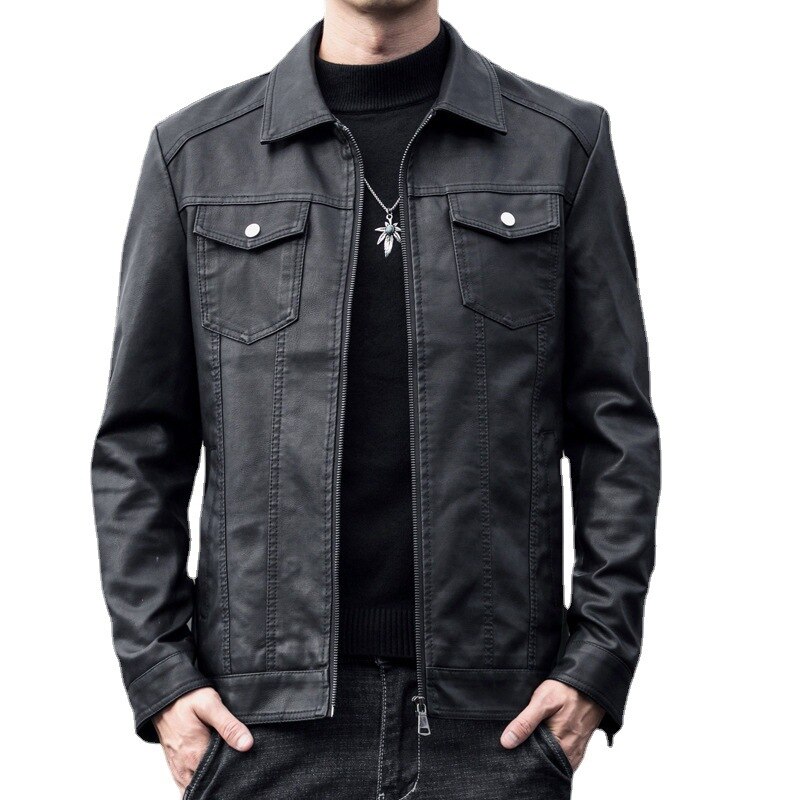 2023 New Spring and Autumn Men's Locomotive Jacket Leisure Leather Clothes Solid Color Coat Fashion Slim Warm Windproof Jacket