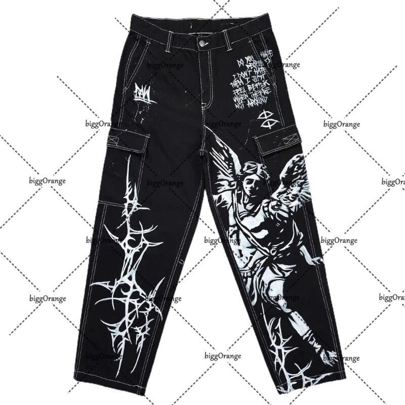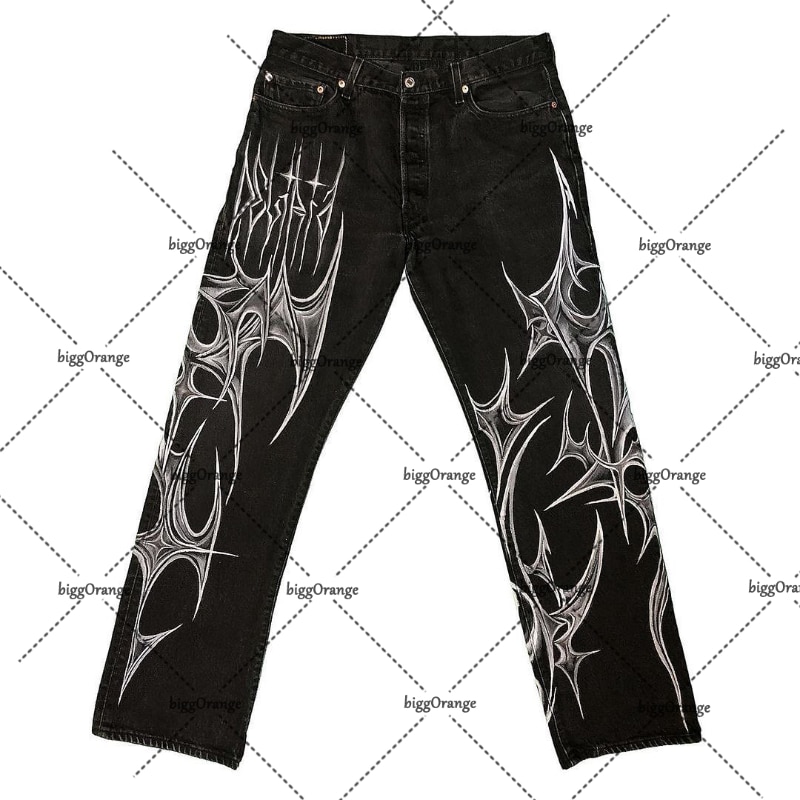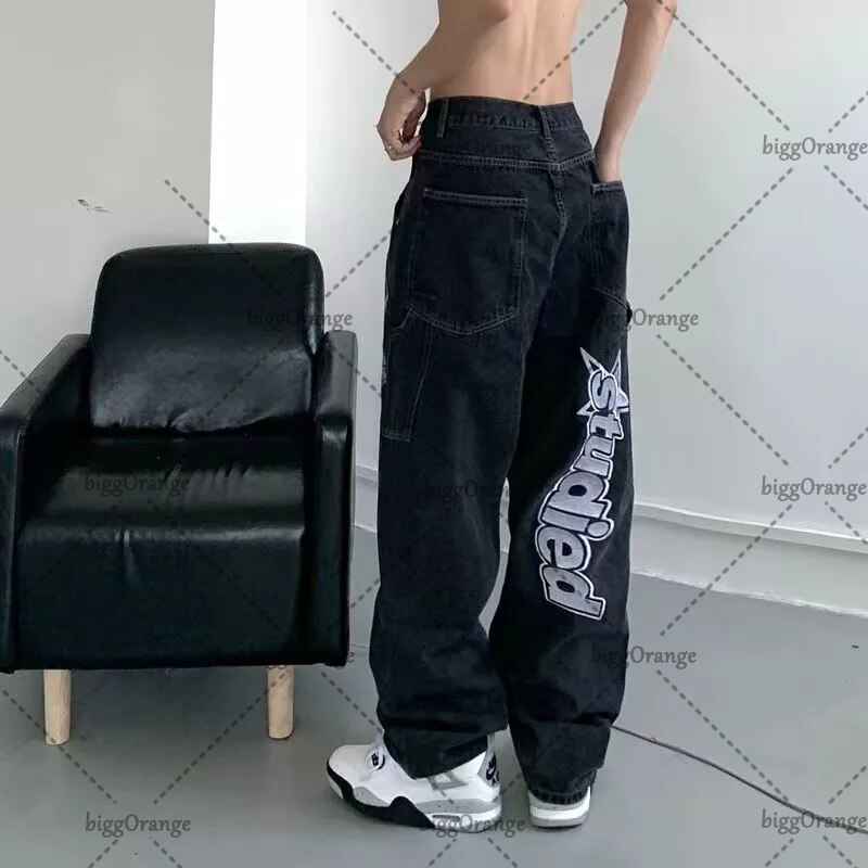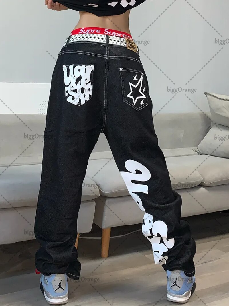 2023Retro star letter printed jeans Harajuku casual fashion straight wide-leg pants women high street hip-hop mopping pants