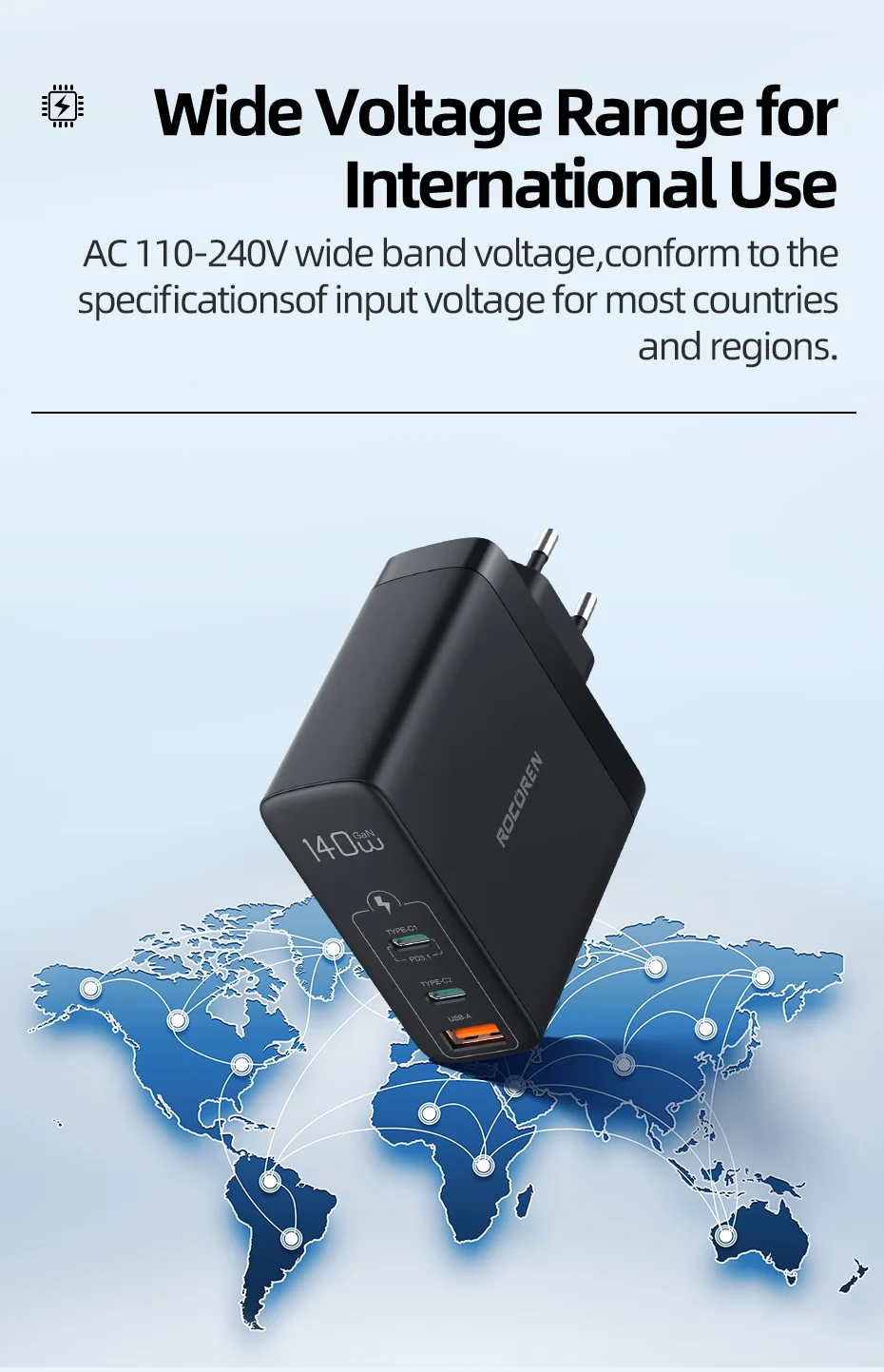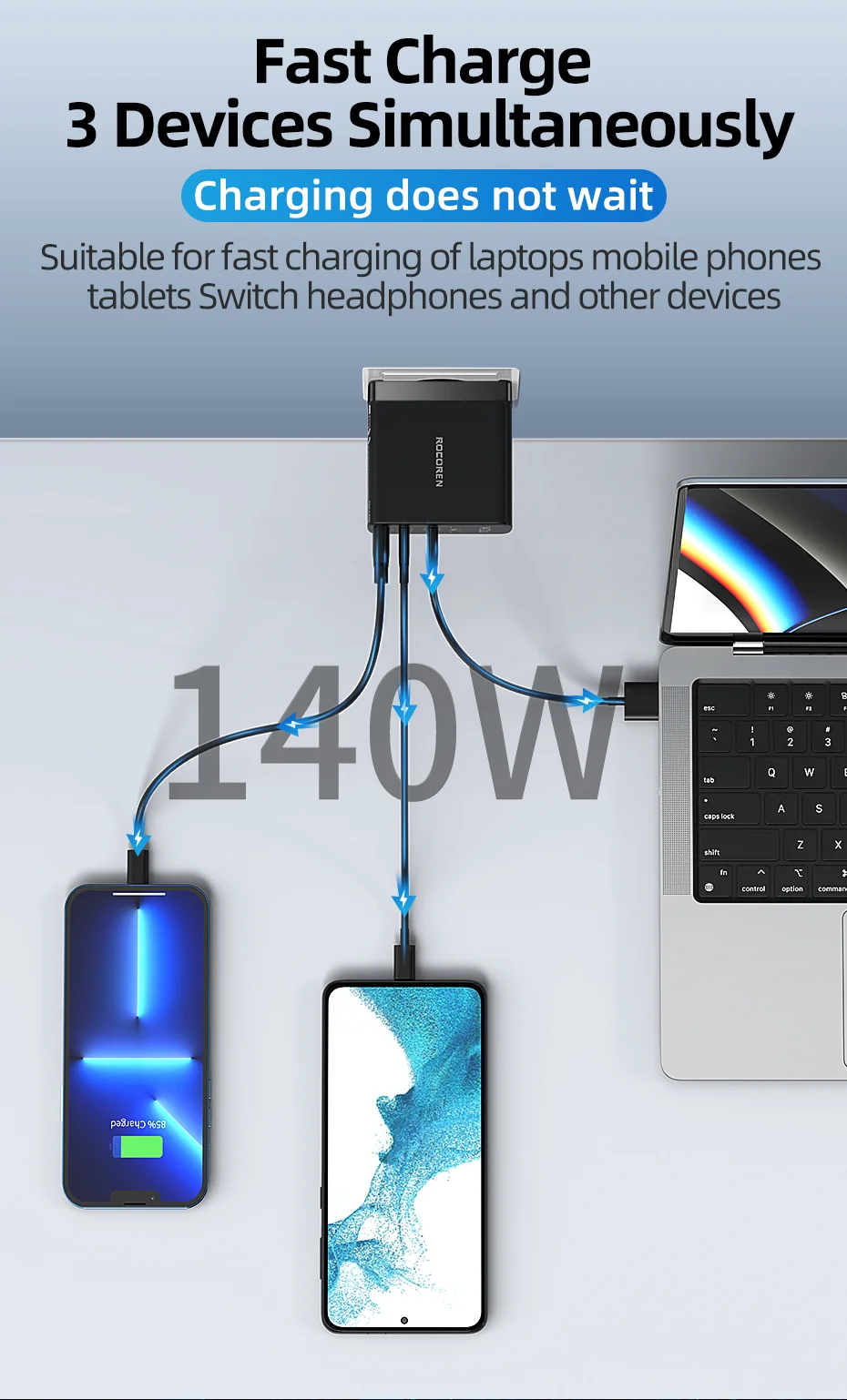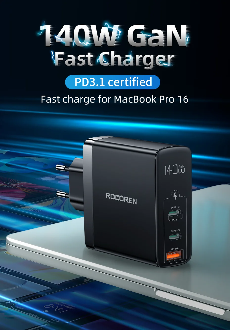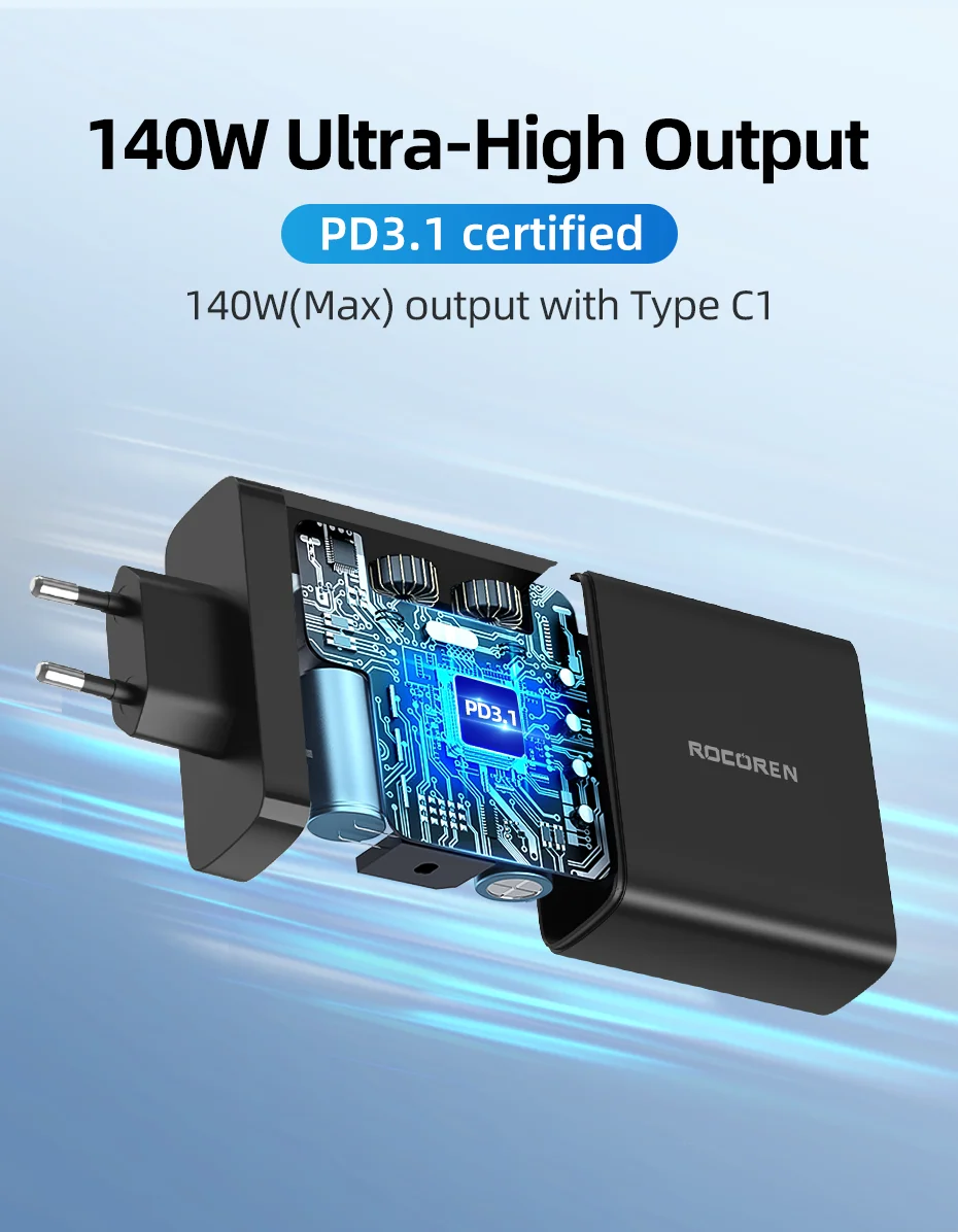 Rocoren 140W GaN USB Charger PD3.1 2C+1U