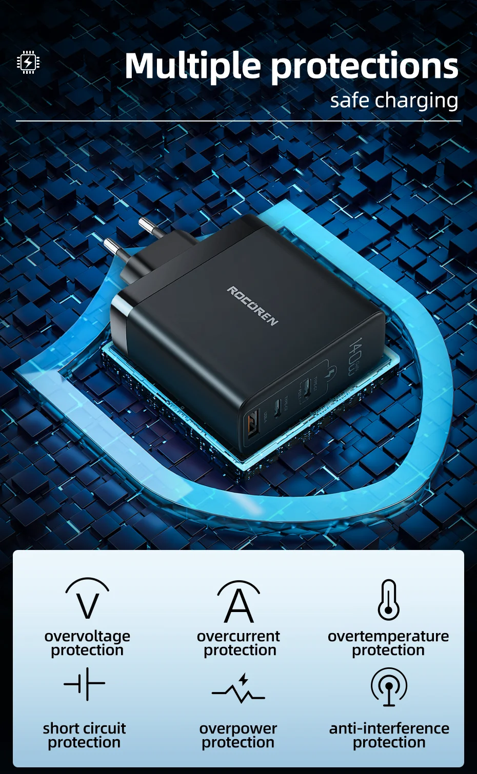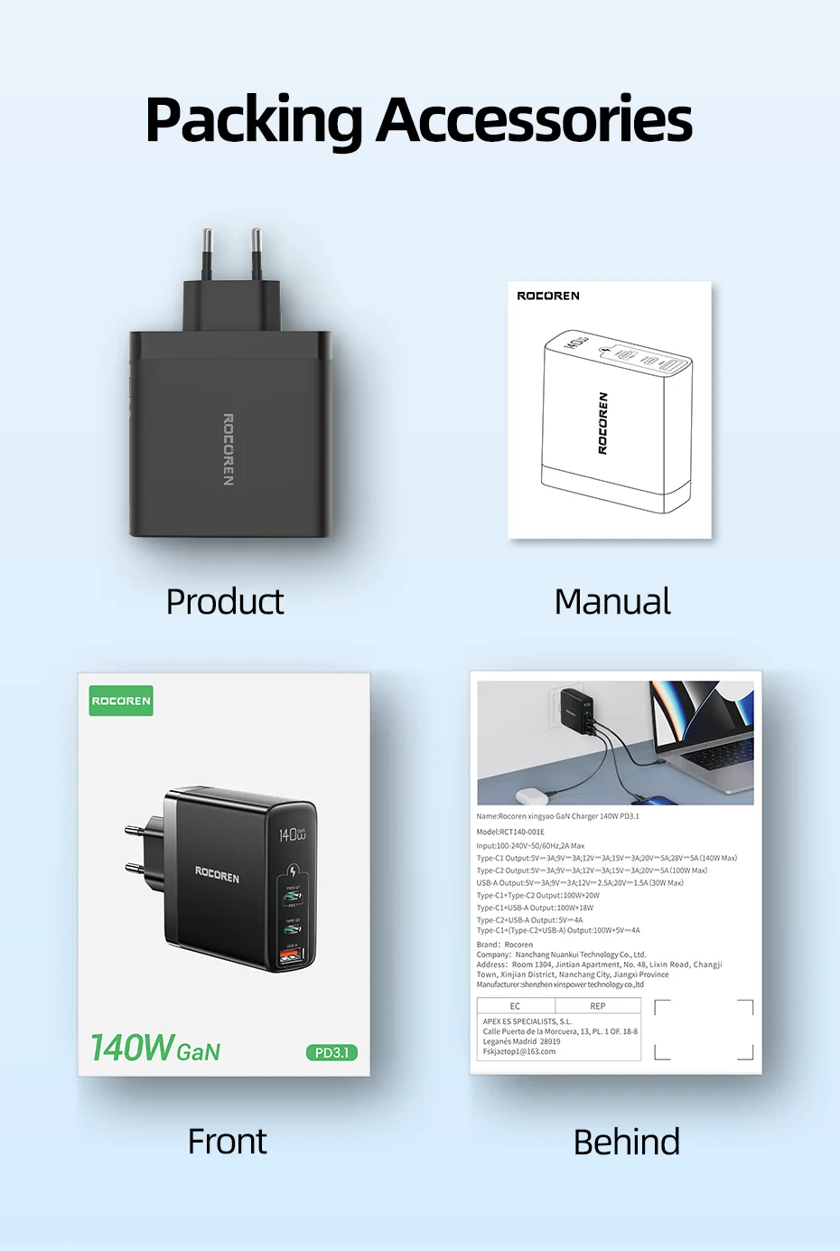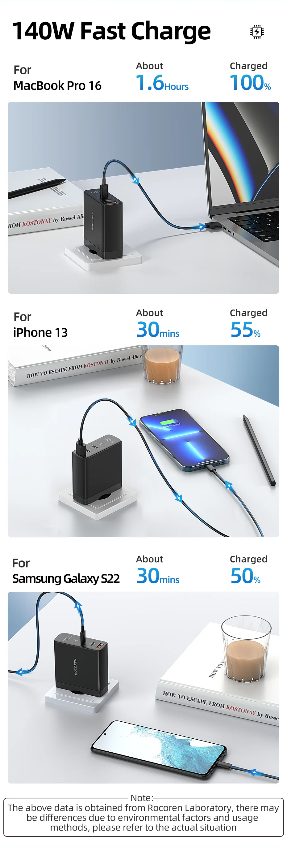 Rocoren 140W GaN USB Charger PD3.1 2C+1U