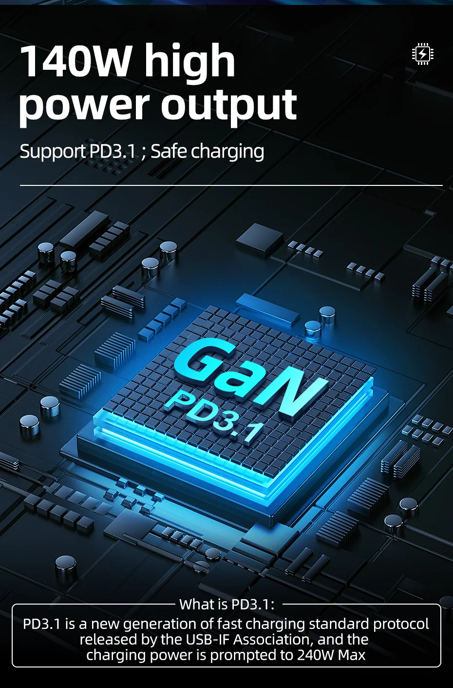 【��Fast Charge For MacBook】140W Max Fast Charger, Suport PD3.1