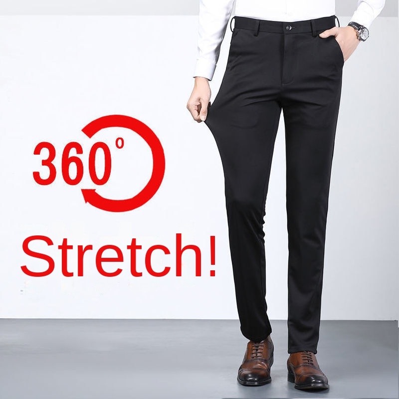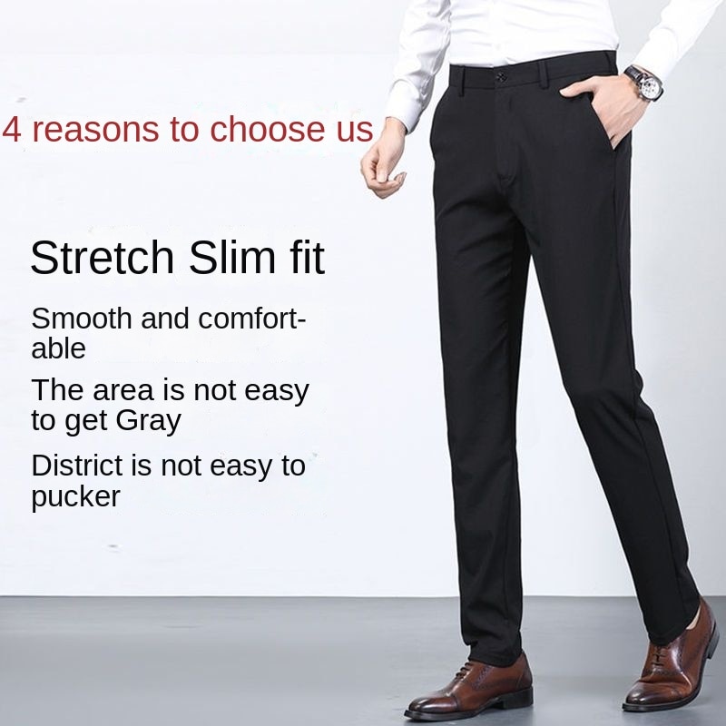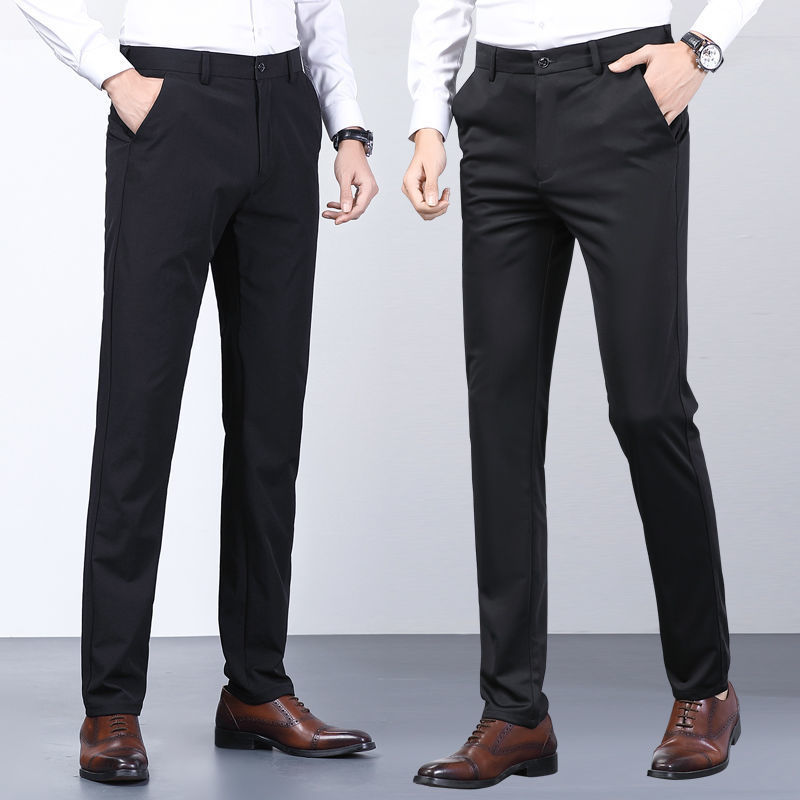 Men's Summer Casual Suit Pants Elastic Non-ironing Trousers Men Black Thin Pants Slim-fit Straight Business Formal Suit Trousers