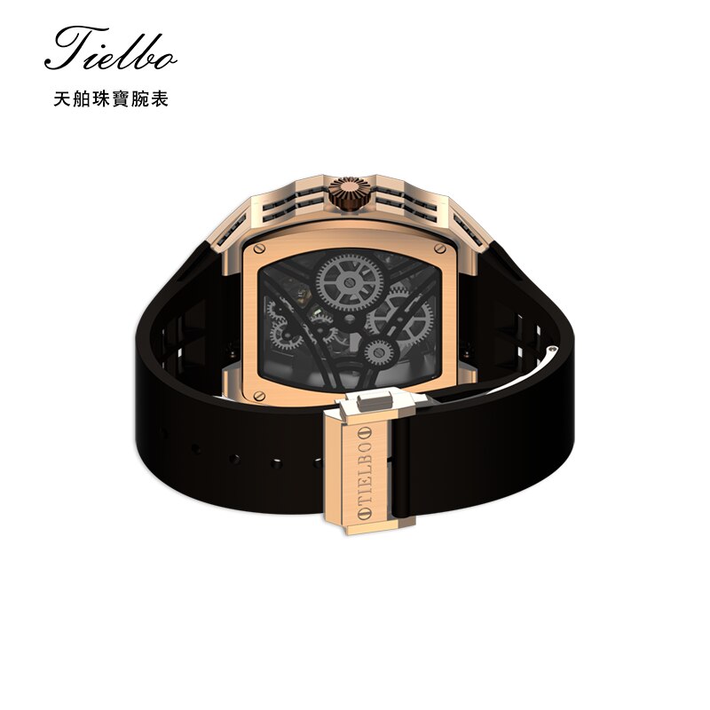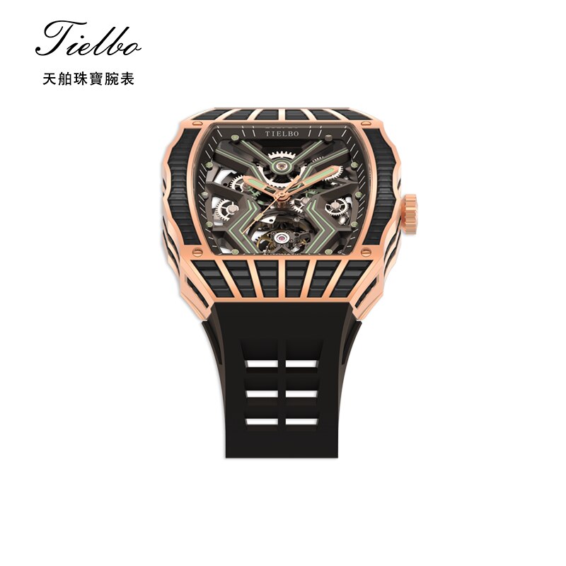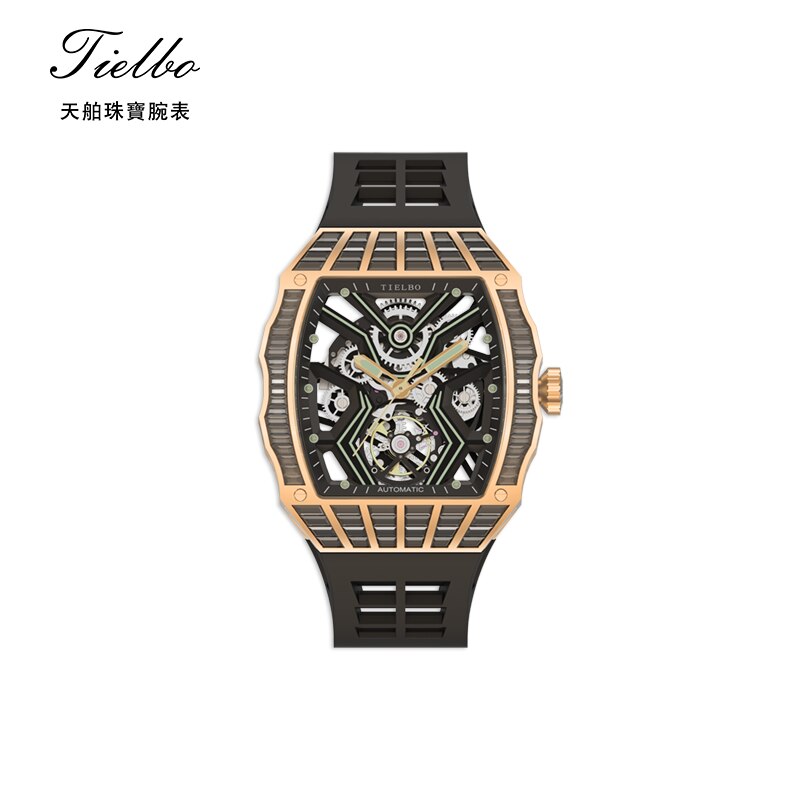 TIELBO Skeleton Automatic Tourbillon Movement Watch For Men Luxury Mechanical Tourbillon Sapphire Watch Mens Carbon Fiber T305