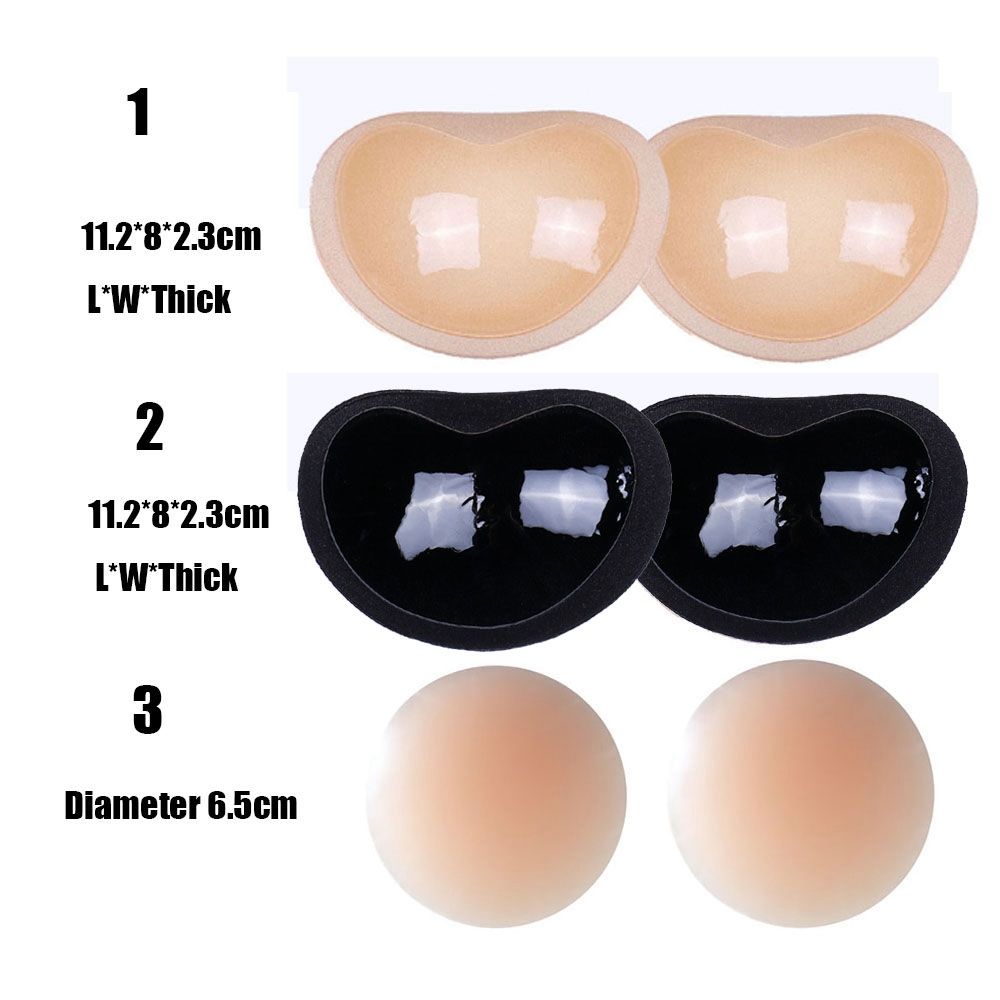 100% Brand New with high qualityGender:WomenColor: Black ,BeigeMaterial: Silicone.Light clothFeatures:Bikini,Swimmsuit,UnderwearStyle 1 and style 2 size:11.2*8*2.3cm/4.41in*3.15in*0.91in(L*W*Thick)Style 3 diameter:6.5cm/2.56''Quantity:1pairFeatures:1.Made of quality silicone material that is skin-friendly, comfortable and safe to use2.Self adhesive material, strong viscosity, prevent allergy and shift, not easy to fall off.3.Thin edges are invisible to ensure the nipple not seen under clothing and provide a natural look.4.Soft touch feeling of silicone gives comfortable wearing experience5.Washable and reusable, money-saving, protects sensitive nipples6.Long and trimmable tape lift for adjustable height, lift and gather your chest and then shape a deep cleavage as well as round chest.7.Perfect solution to ensure your nipples not show and keep your breasts lifted while going bra-less8.Can be used as undergarments for swimwear, wedding gowns, formal dresses, backless and revealing tops that may not provide enough coverage for wearing a full bra.Package Content:1 Pair Silicone Bra PadNote:1.Please allow 1-3mm errors due to manual measurement.2.Due to the difference between different monitors,there are color differences,pls take the real product as the standard!