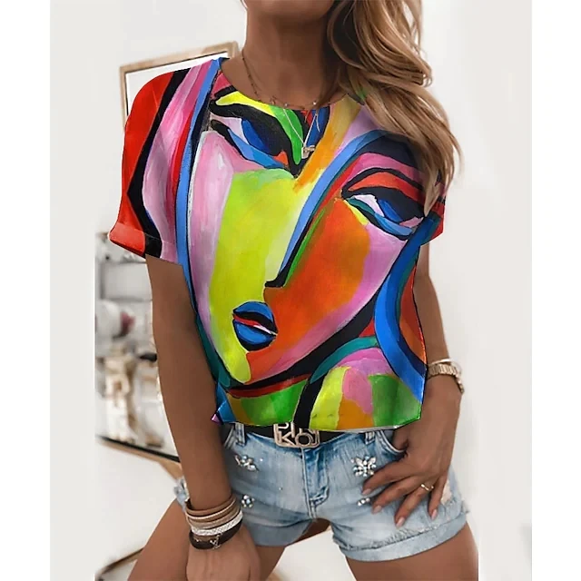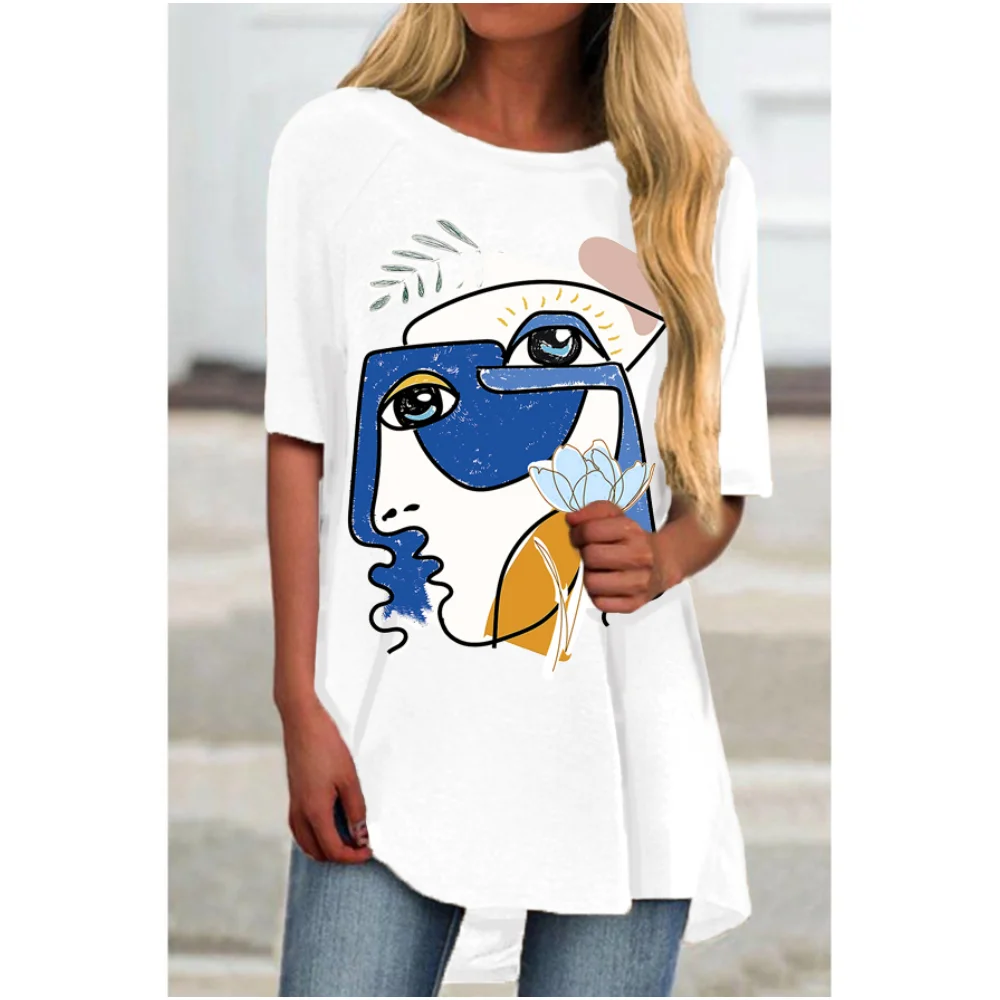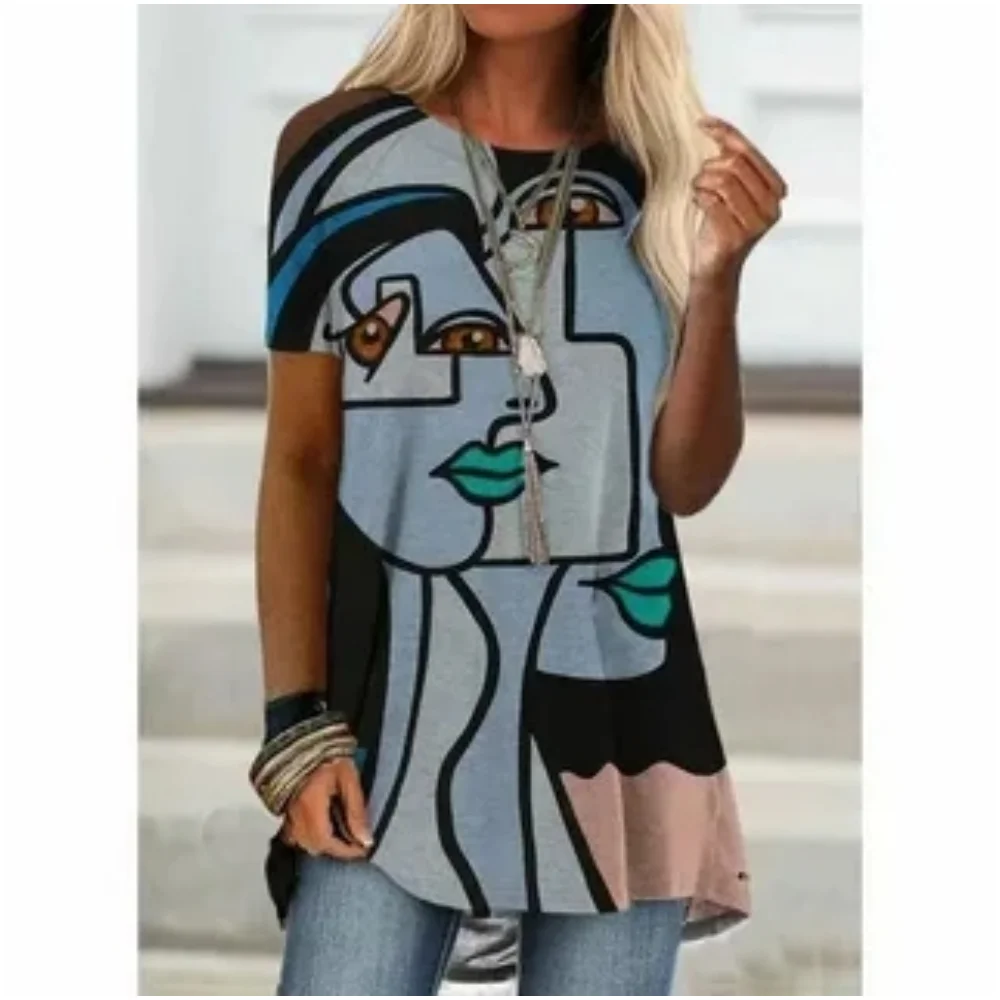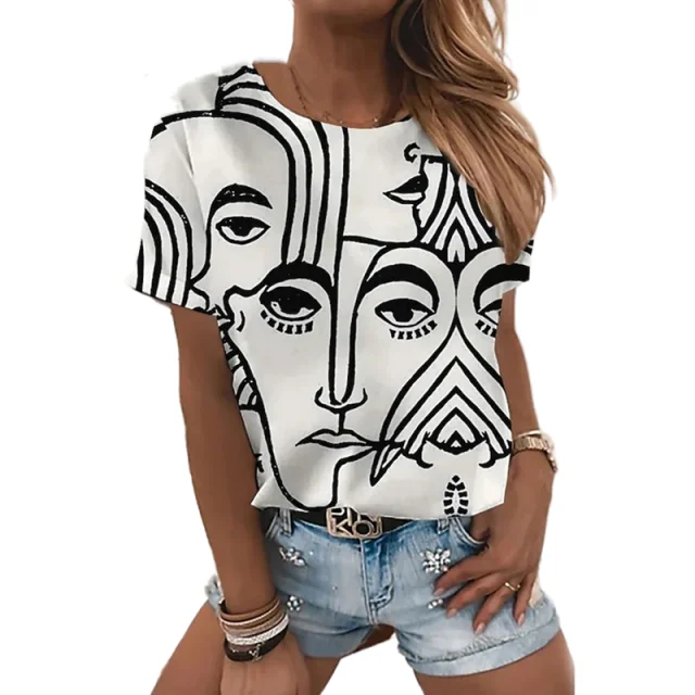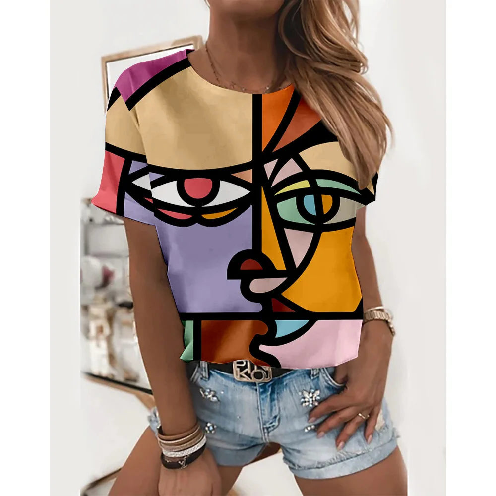 Vintage T Shirt For Women Abstract Face Graphic Girls T-shirt Classic Hand Paint Short Sleeve Tees Female Oversized Fashion Tops