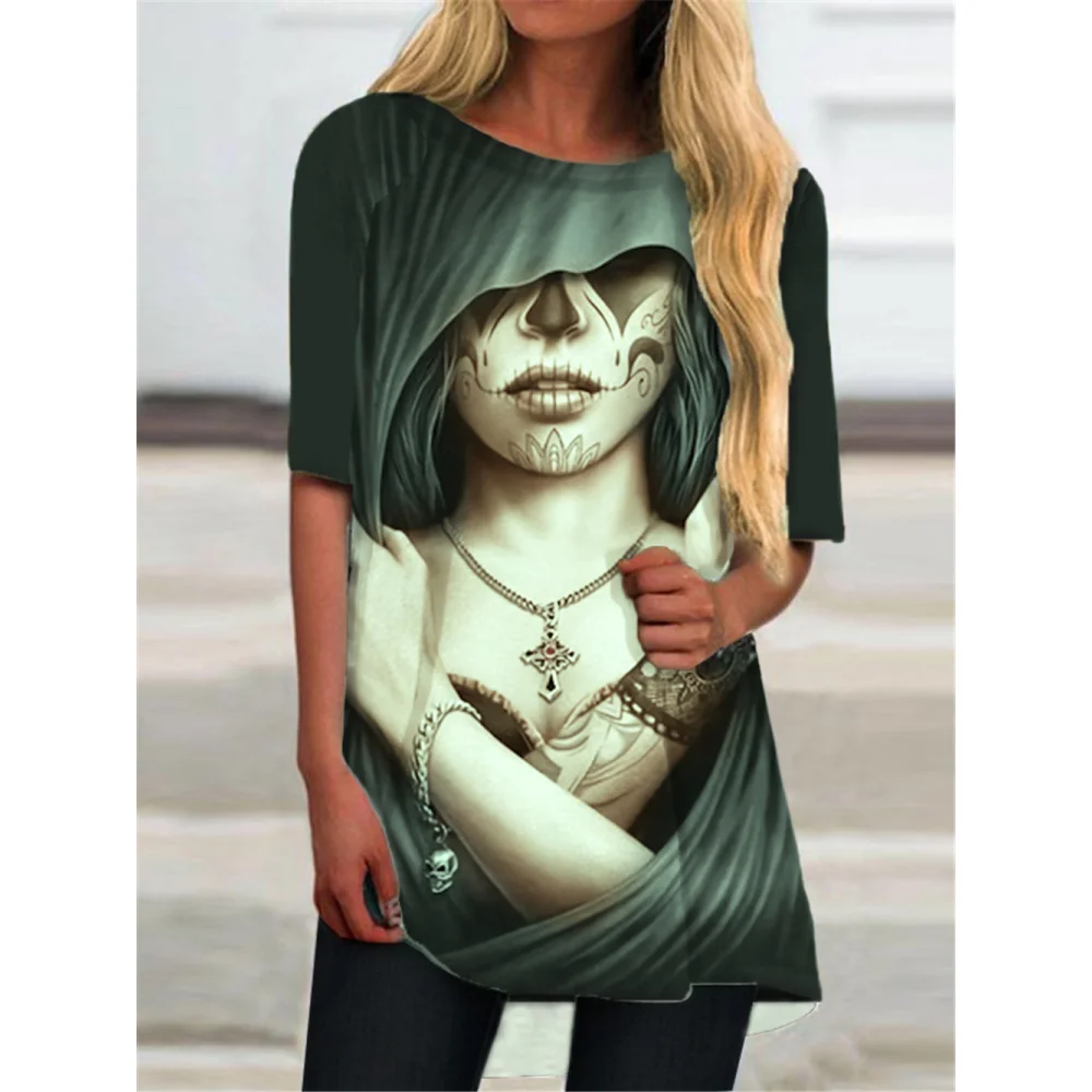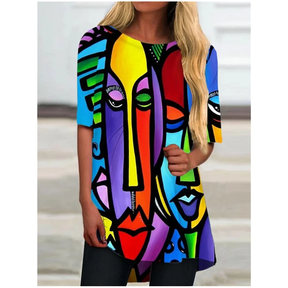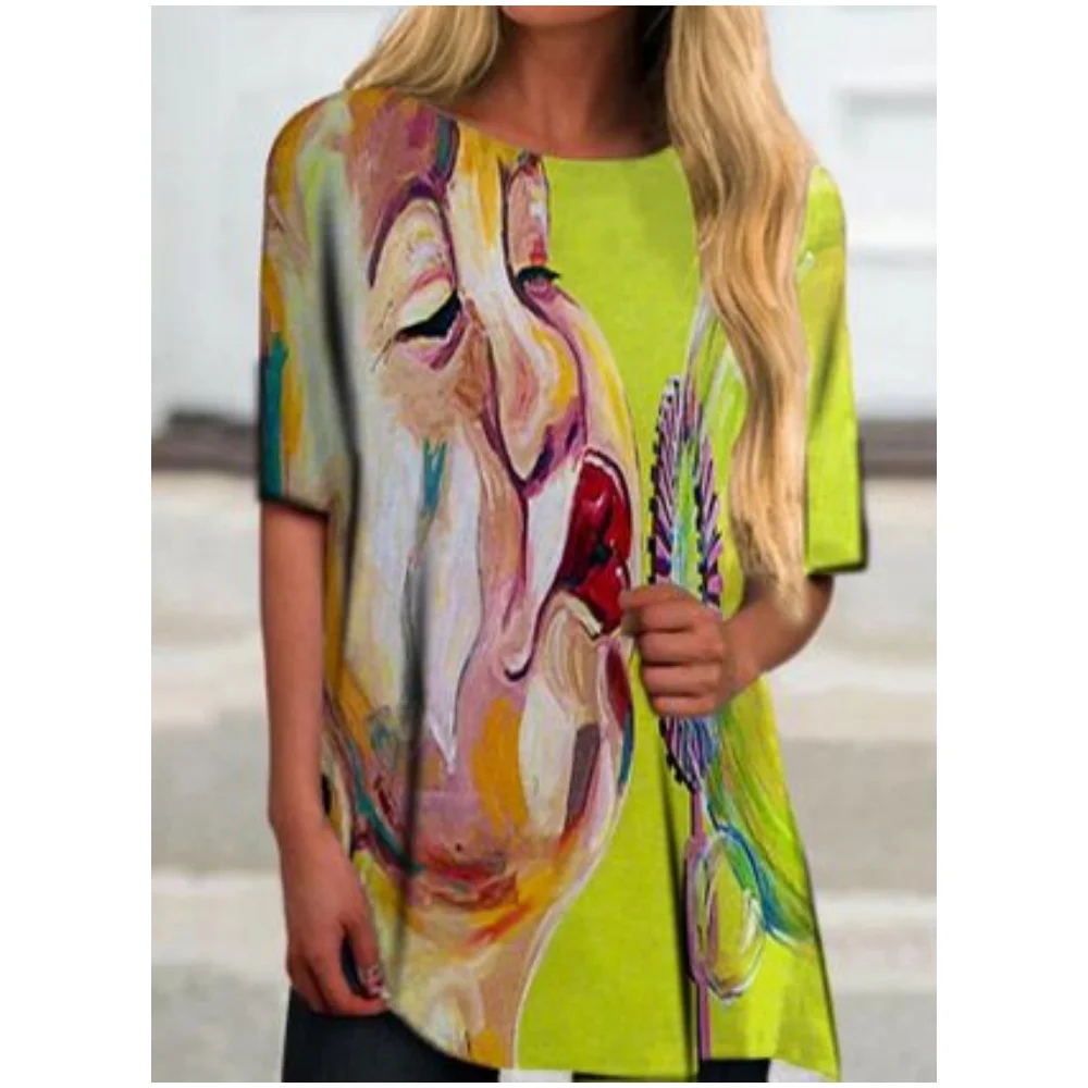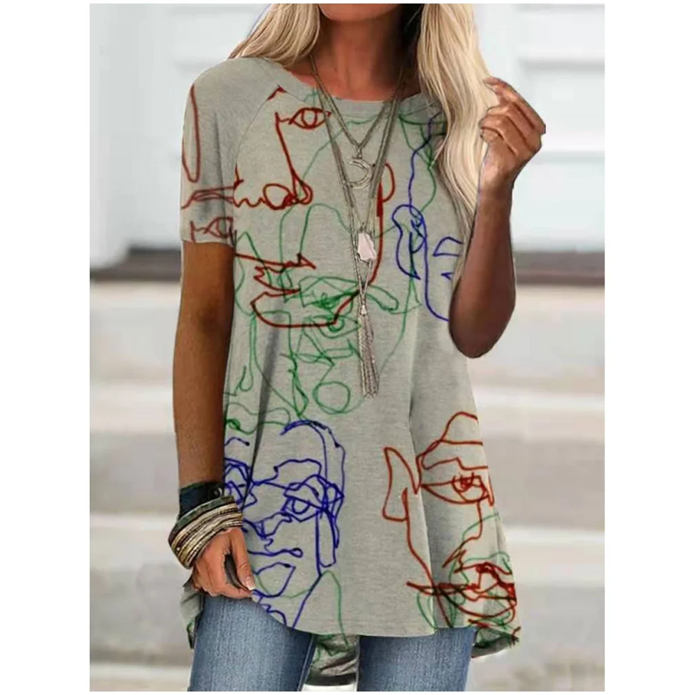 Vintage T Shirt For Women Abstract Face Graphic Girls T-shirt Classic Hand Paint Short Sleeve Tees Female Oversized Fashion Tops