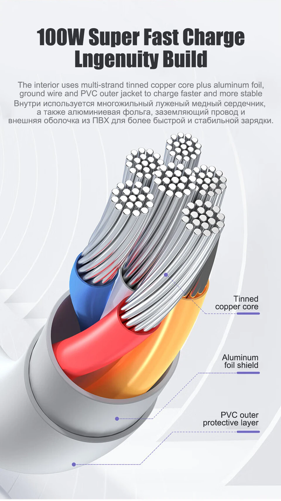 7A USB C Cable Fast Charger USB C To Type C Cable For Xiaomi Redmi Note 12 11 10 Huawei Oneplus Samsung S21 S22 Charge Data Wire