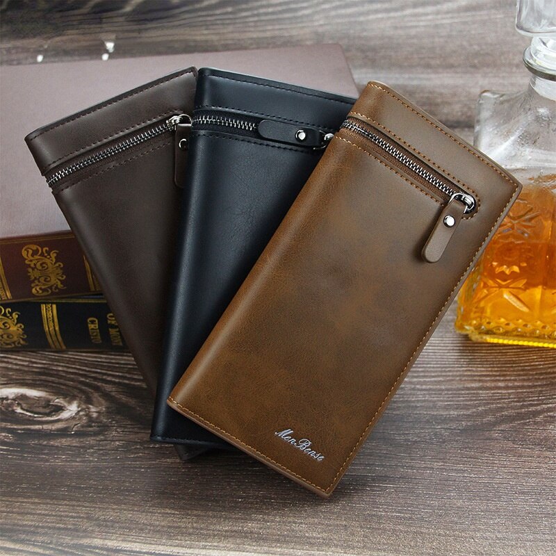 Brand Men Genuine Leather Short Wallet with Zipper Coin Pocket Vintage Big Capacity Male long Money Purse Card Holder New