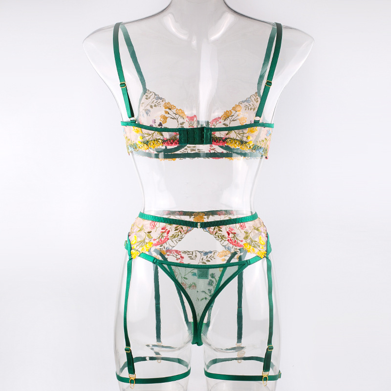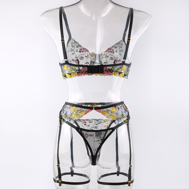 Woman Lingerie Sensual Lace Underwear Sexy Transparent Embroidery 3-Piece Garters Fancy Beautiful Short Skin Care Kits Intimate