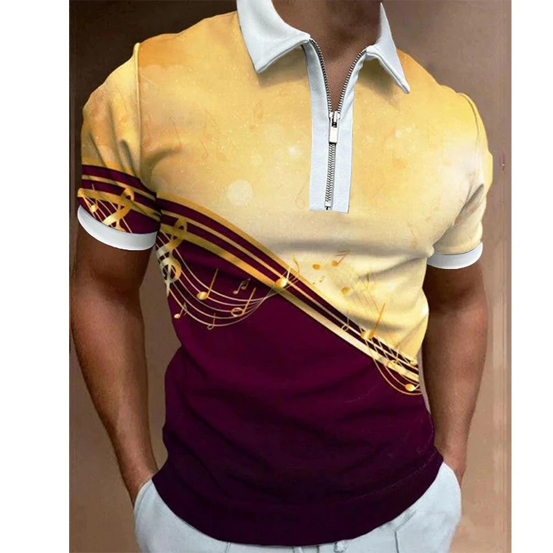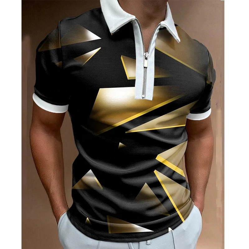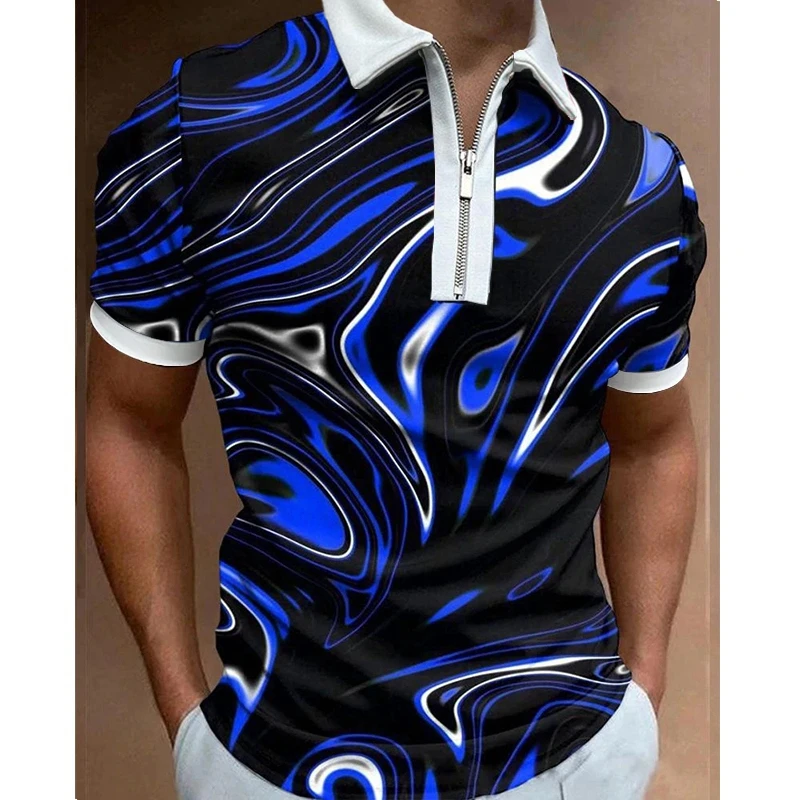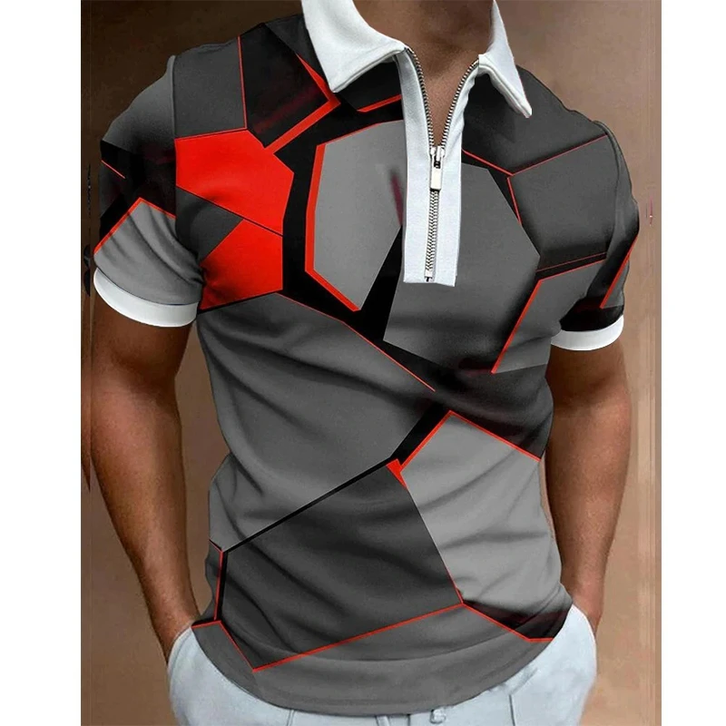 New geometric t-shirt multiple 3D printing short-sleeved pullover casual Harajuku oversized loose men's T-shirt button POLO