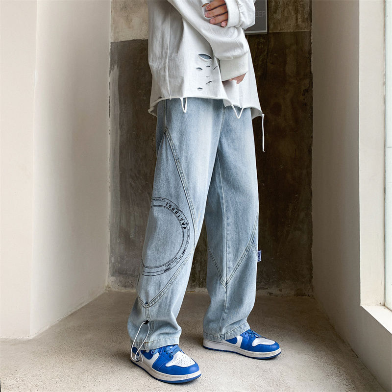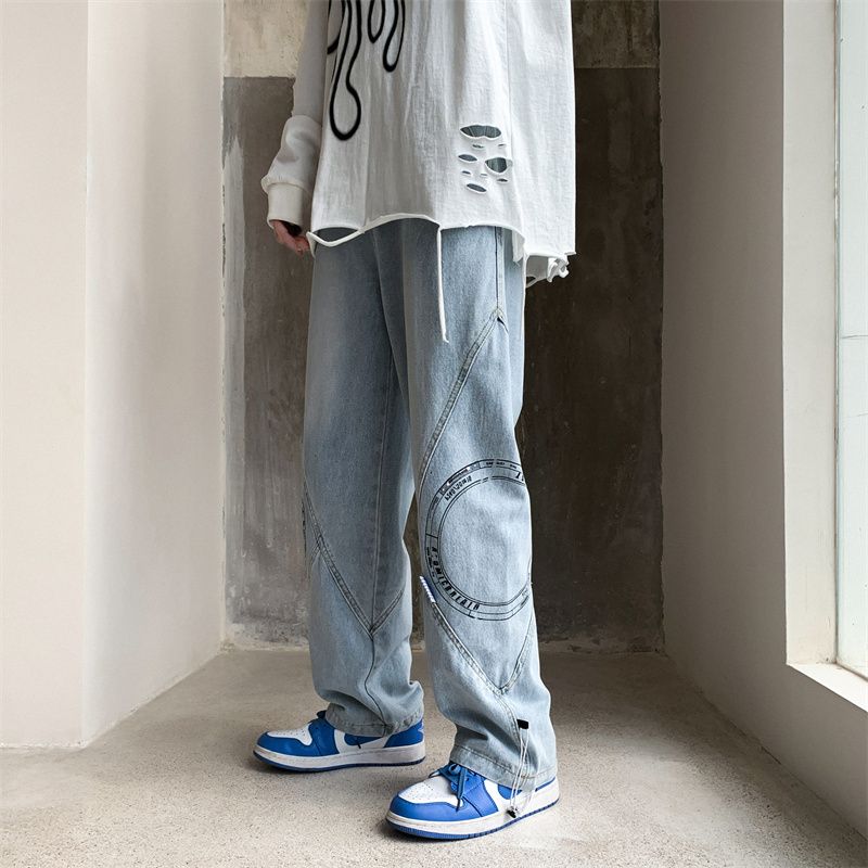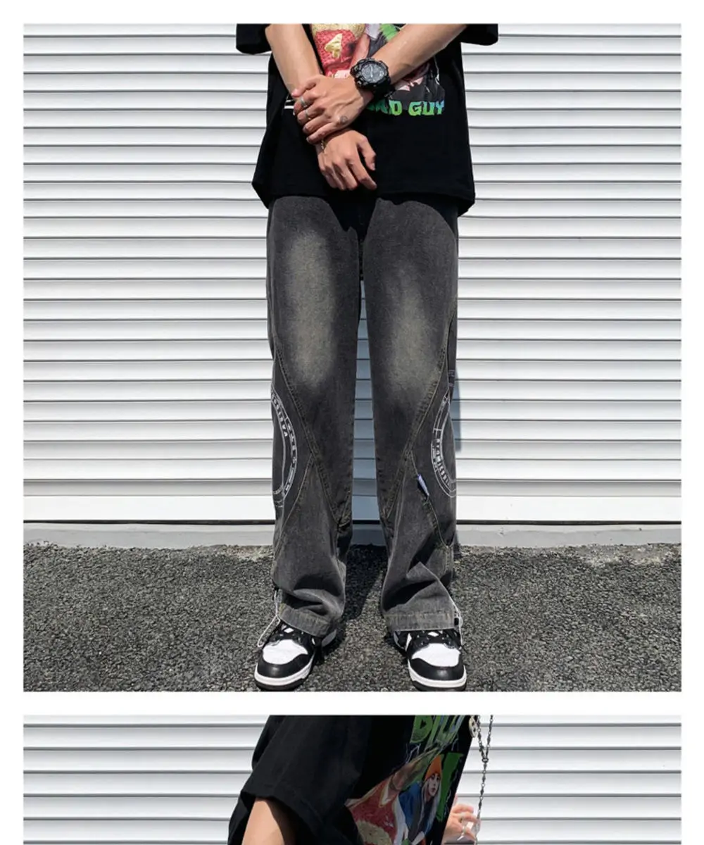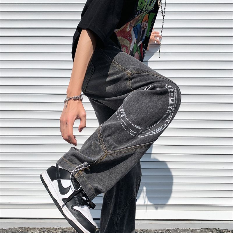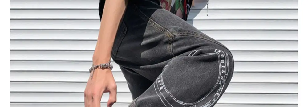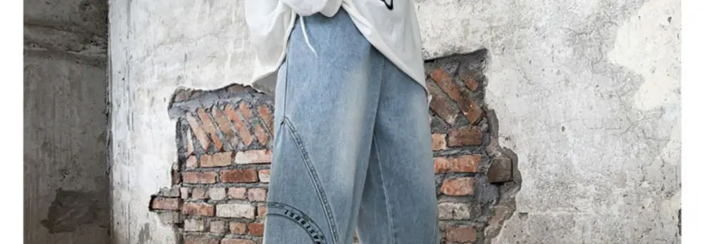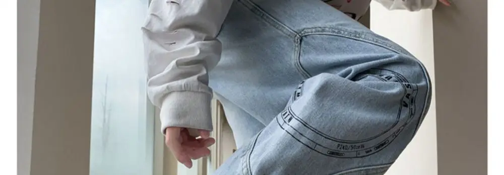 Letter Print High Waisted Jeans Woman High Street Vintage Distressed Baggy Jeans Women Clothing Casual Straight Women Jeans