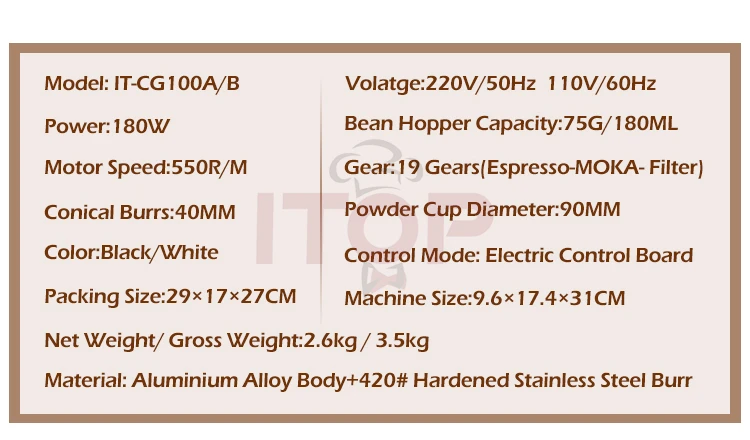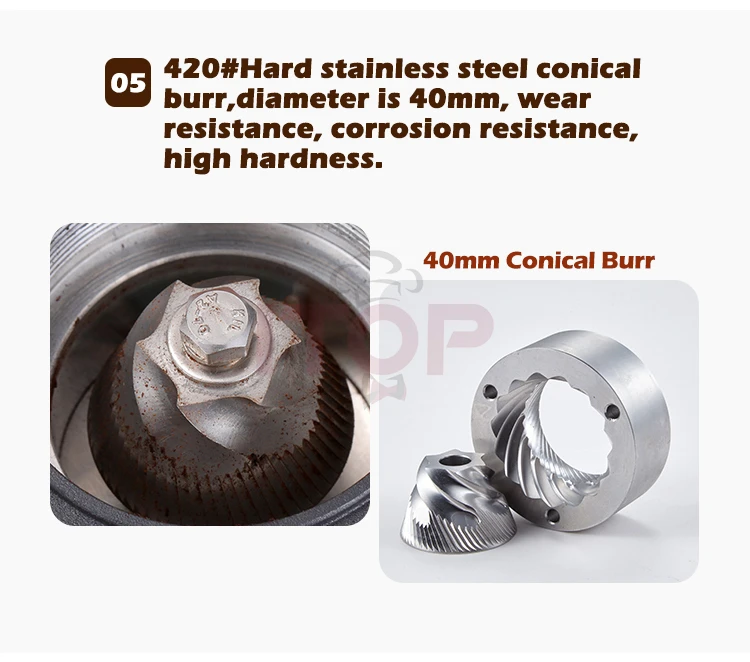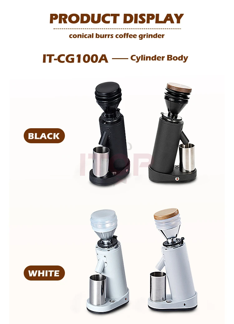 ITOP40 Cylinder Coffee Grinder Titanium Burr Conical 40mm Metal Bean Hopper 75g Wooden Cover Popular Bean Grinder Family Cafe V2