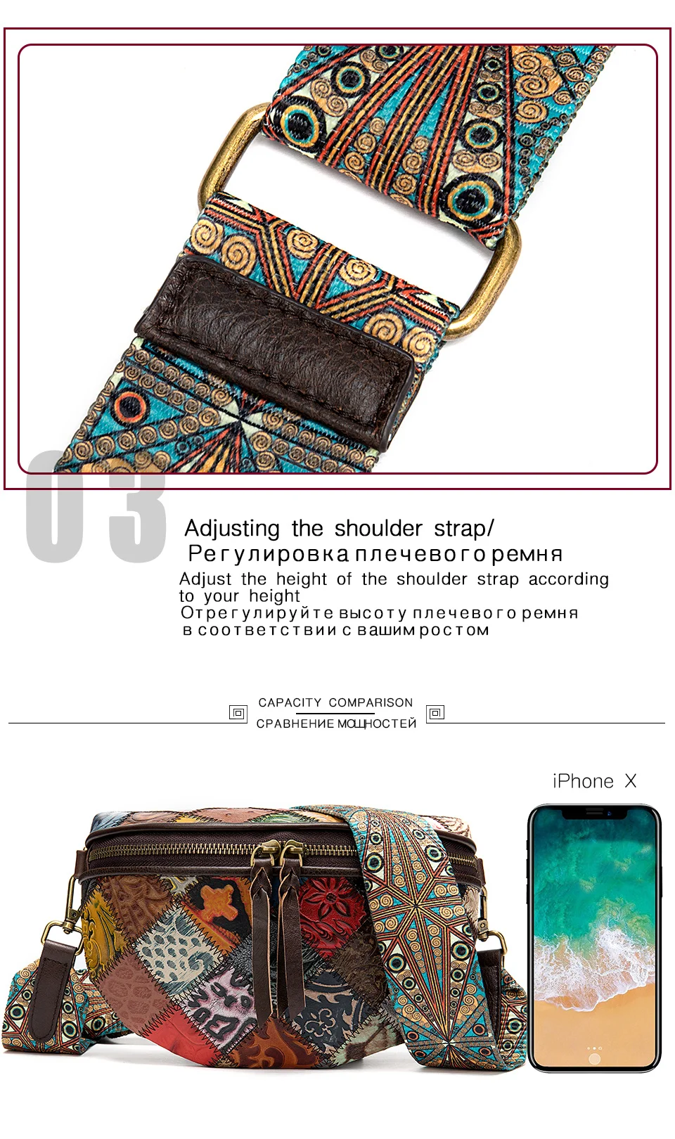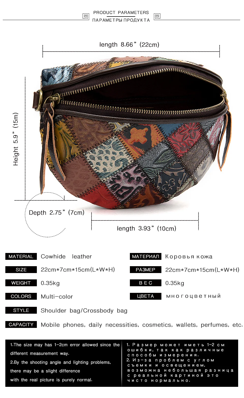 Material: Genuine Leather / Cowskin Weight: 0.4KG Color: Black/Multicolor