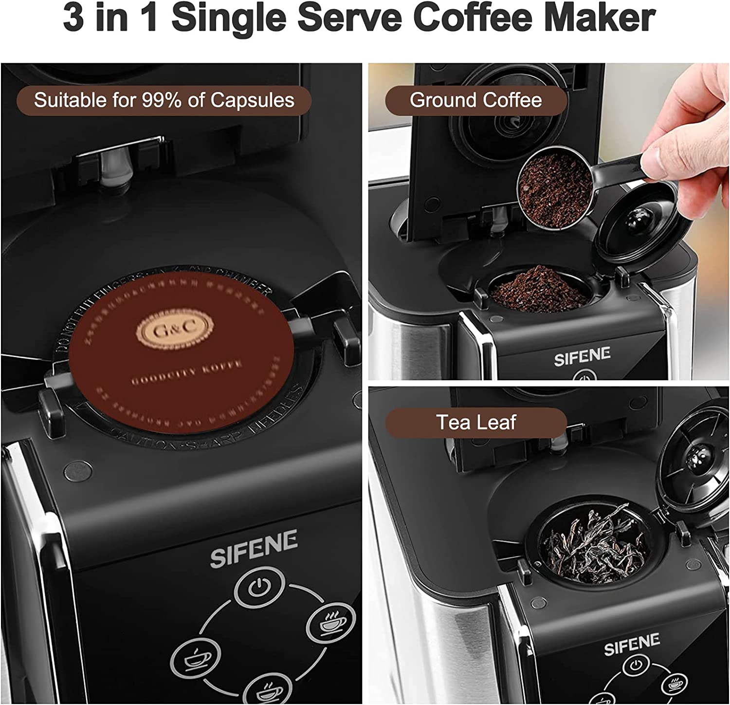 K Cup Coffee Maker, 3 in 1 Single Serve Coffee Machine, Pod Coffee Brewer For Ground Coffee, Capsule pod, Leaf Tea maker, 6 to