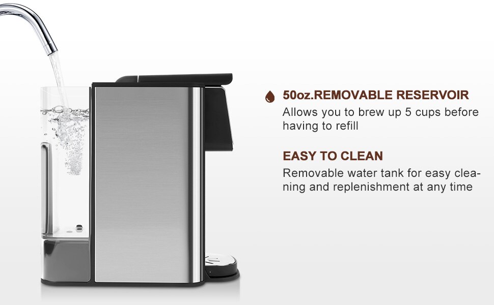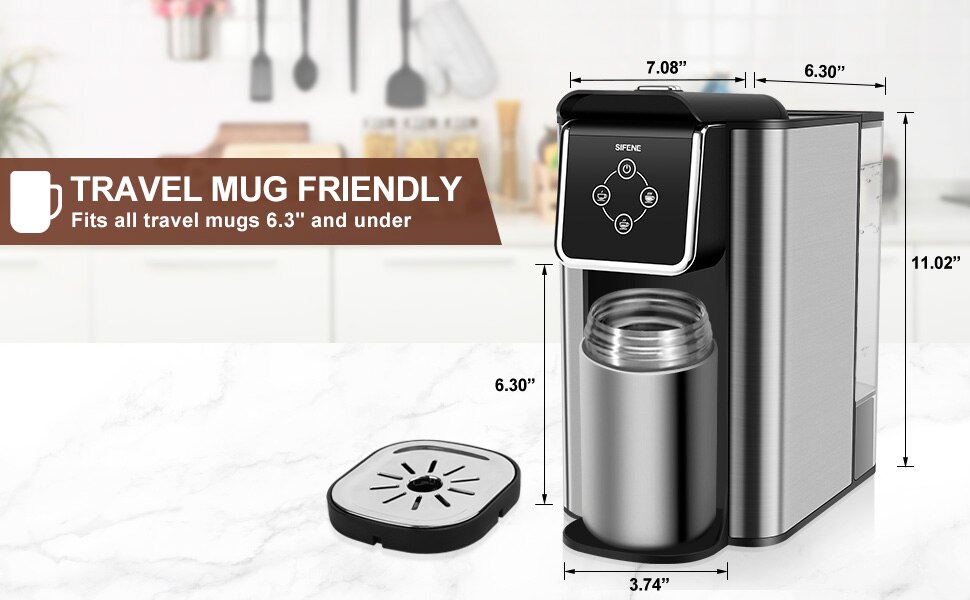 • 【Travel Mug Friendly】 The single serve coffee machine supports the size up to 6.3” travel mugs by removing the drip tray.