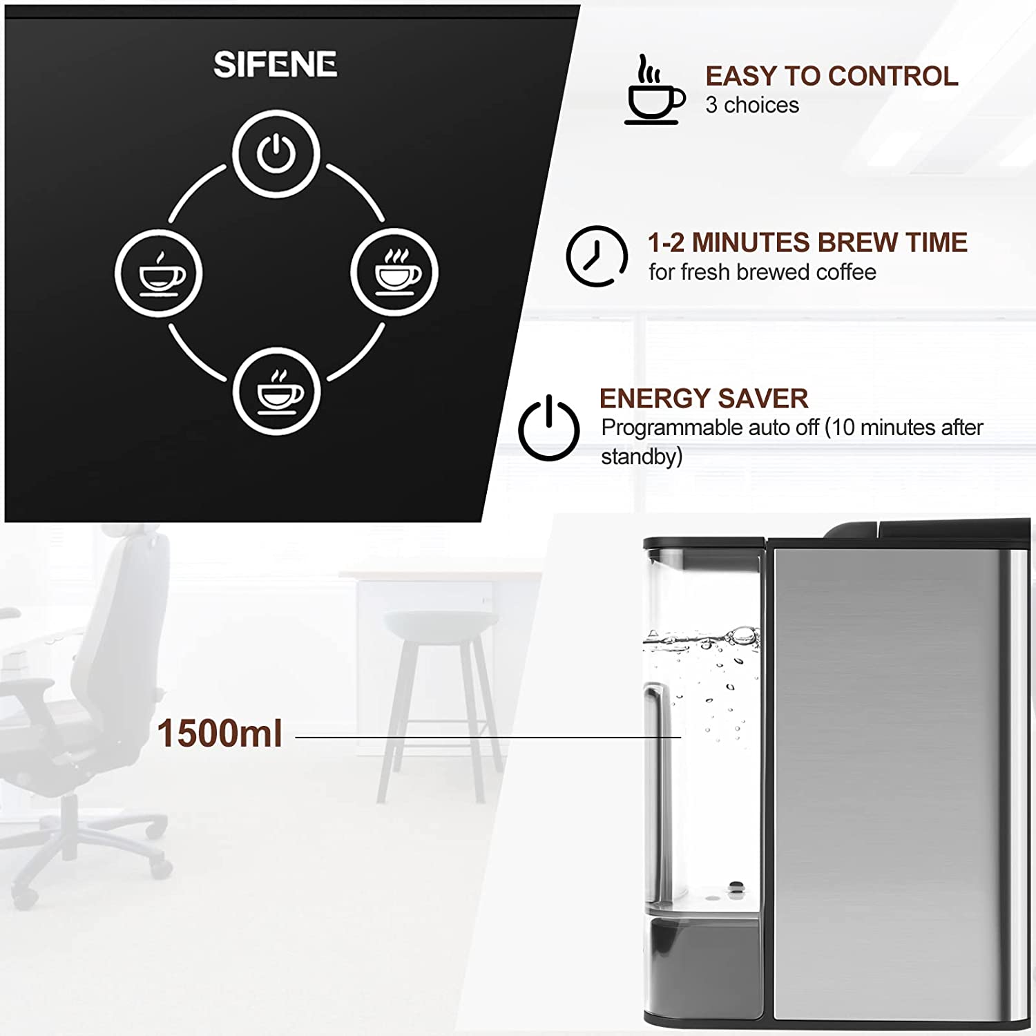 • 【Simply To Use】 Pod Coffee Maker allows you to brew different cups of sizes- 6,8,10 oz of hot coffee or tea with a simple button in few seconds.