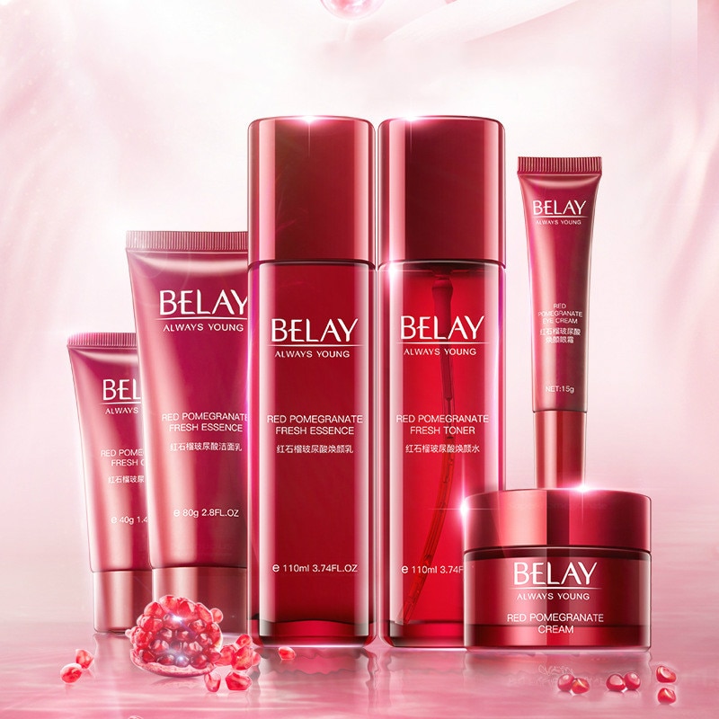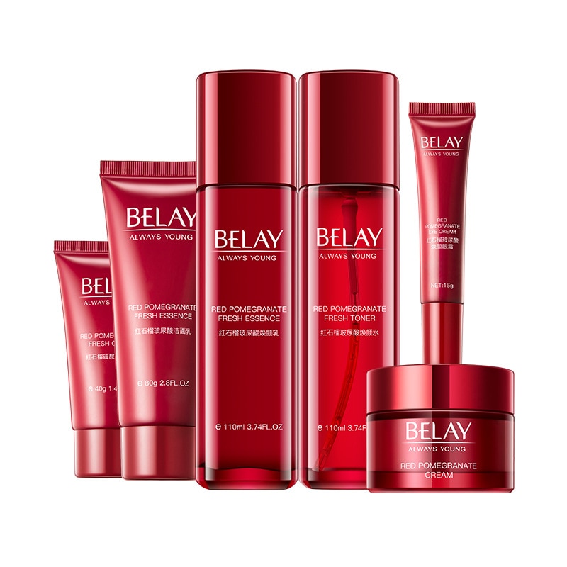 Skin Care Set Moisturizing Nourish Brighten Oil Control Beauty Red Pomegranate Hyaluronic Acid Six-piece Set Facial Skin Care