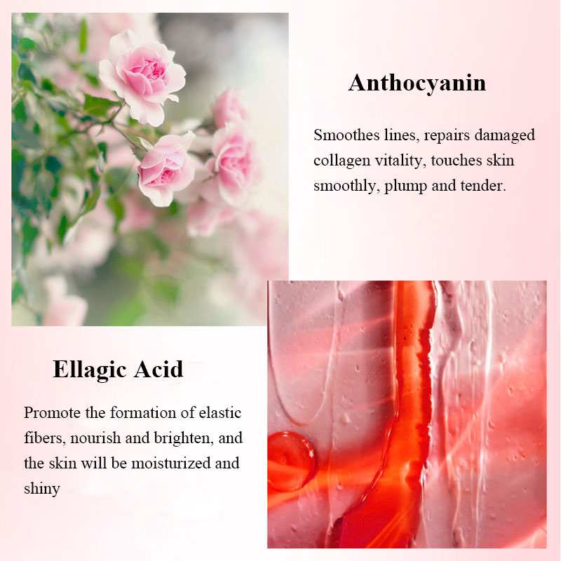 Efficacy: Contains pomegranate fruit extract and a variety of emollient ingredients, moisturizing and nourishing, soothing roughness and dullness, giving the skin silky smooth and moisturizing, showing a full and translucent feeling.