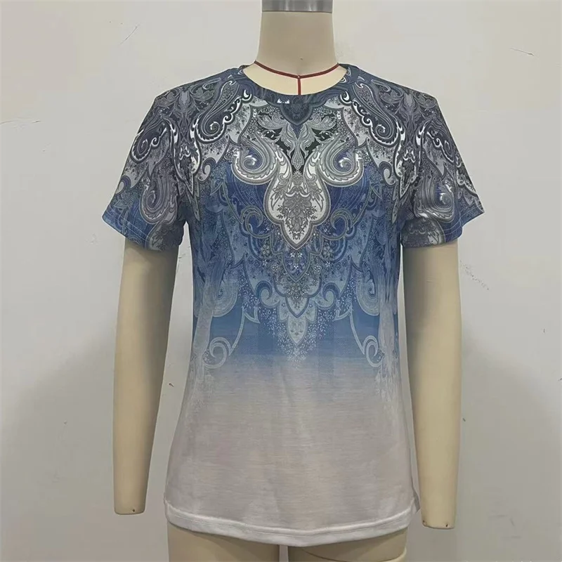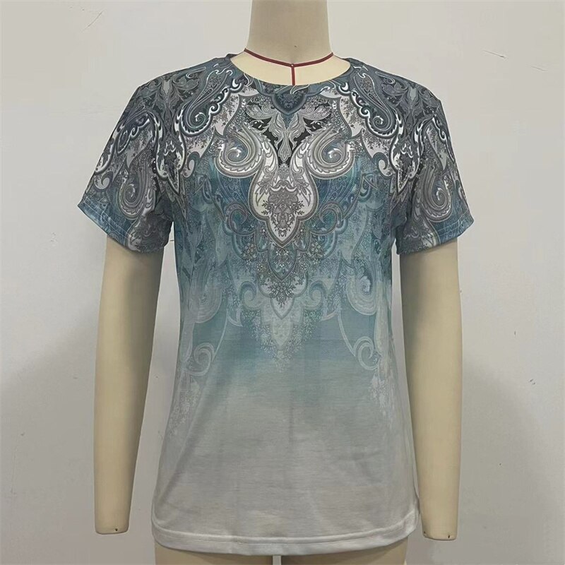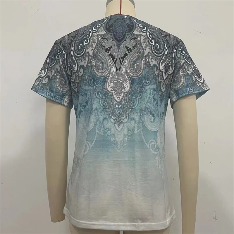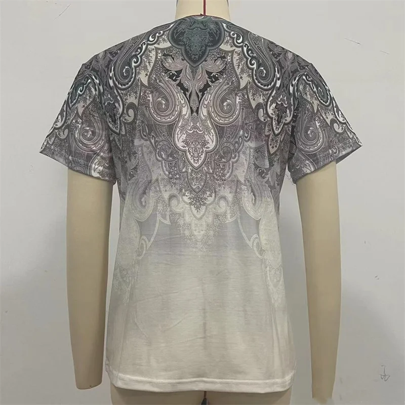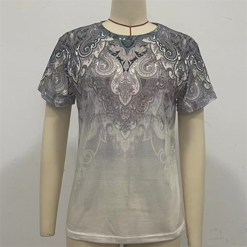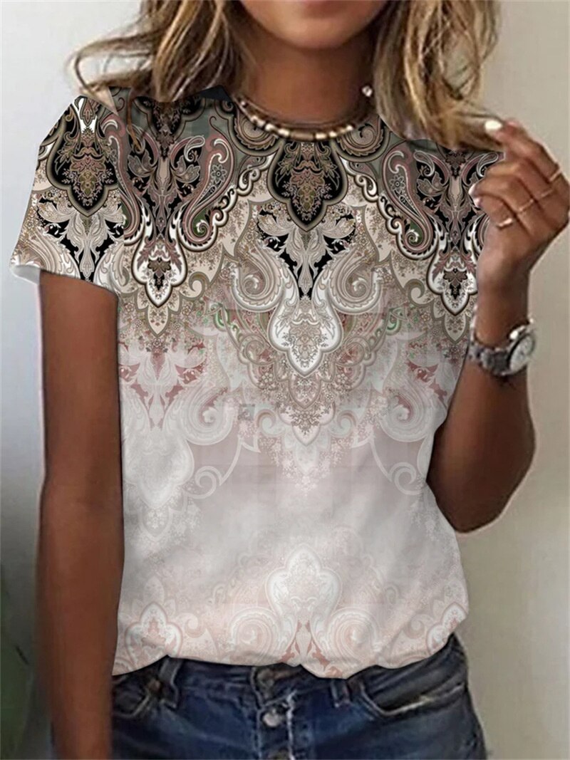 Vintage Daily Casual Basic T-Shirt Female Summer Loose Flower Print Ethnic Style Short Sleeve Tees Women's O Neck Pullover Tops