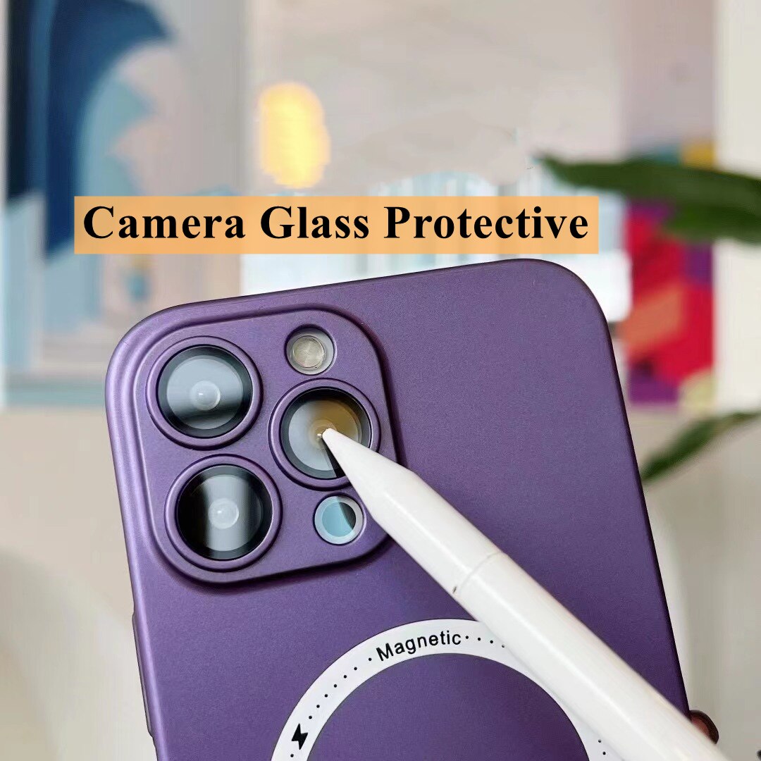 For Magsafe Magnetic Wireless Charger Case for iPhone 14 13 12 11 Pro Max Plus Luxury Matte Silicone Glass Lens Shockproof Cover