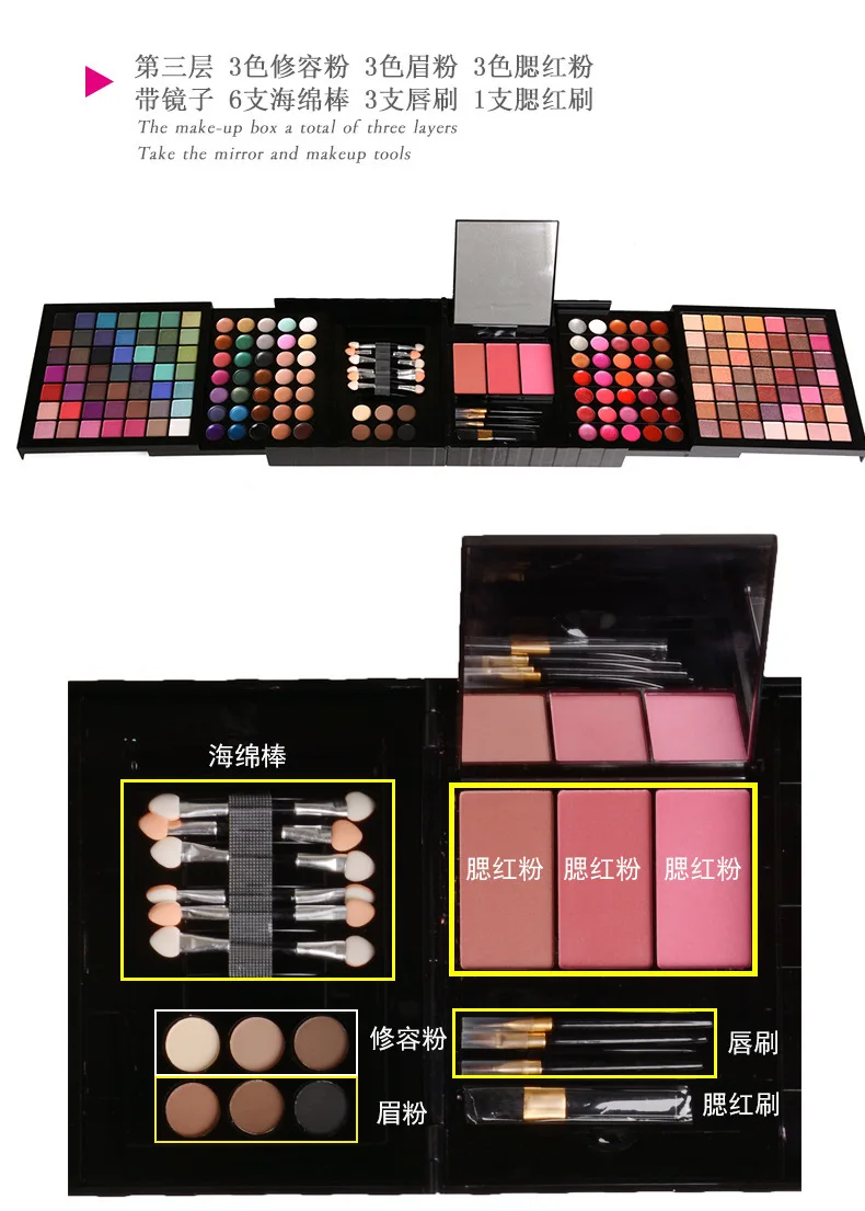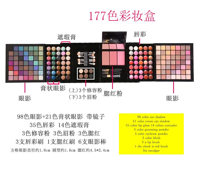 177 Color Makeup Palette Matte Shimmer Eyeshadow Palette Brush Lipstick Makeup Set Bronze Blush Cosmetic Gift Contour Palette