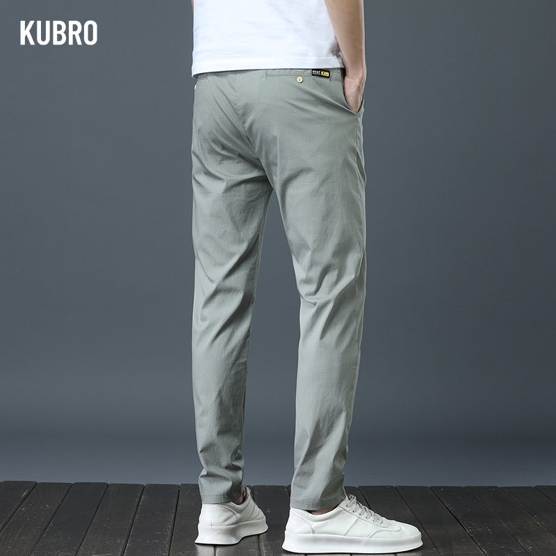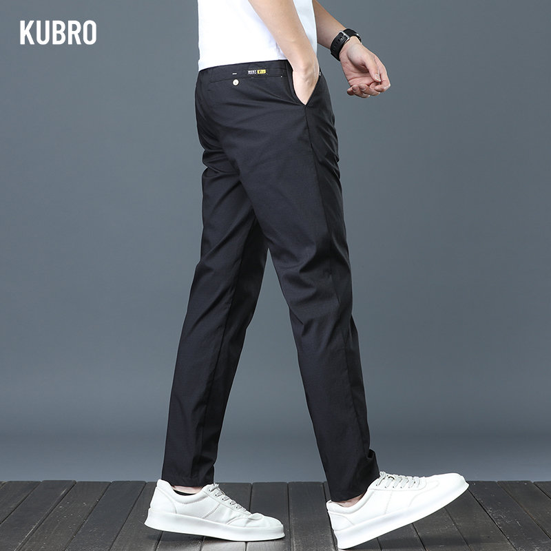 KUBRO Fashion Ice Silk High Elastic Pants Men Trousers Straight Leg Versatile Comfortable Breathable Personal Back Pocket Design