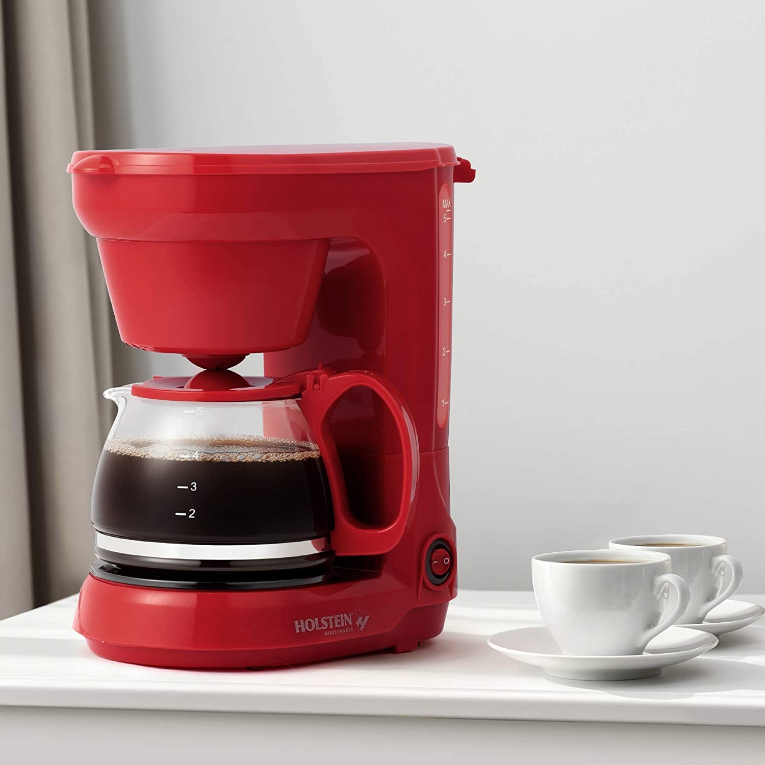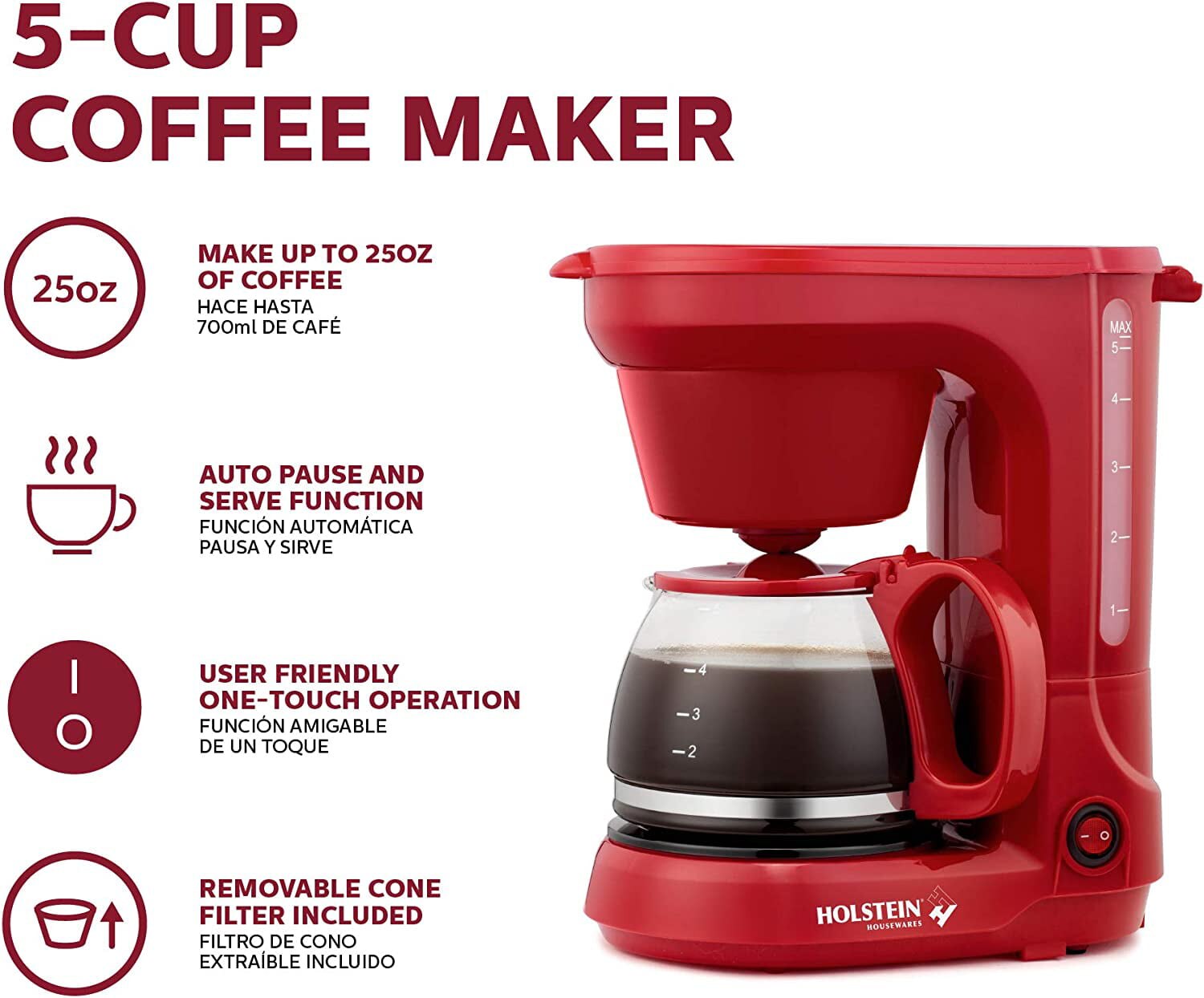 5-Cup Compact Coffee Maker, Red - Convenient and User Friendly with Auto Pause and Serve Functions