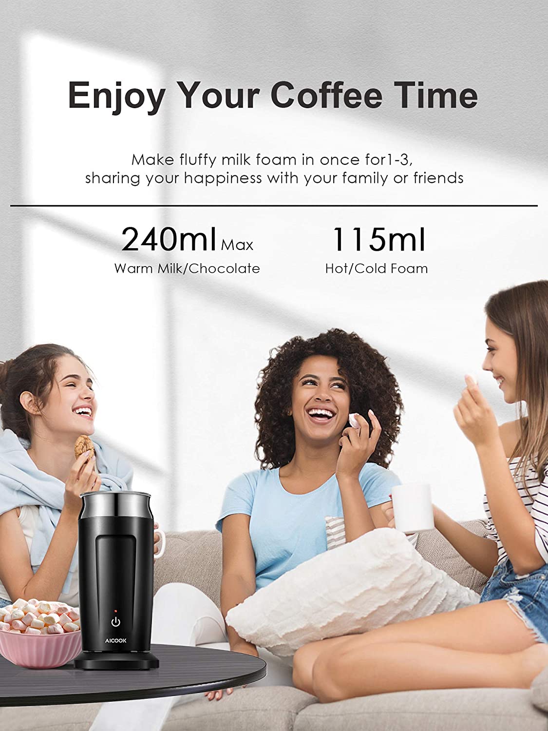 - Fast and Quiet- coffee frother operates quietly and fast. You can get the perfect dense milk froth in 40 seconds for delicious lattes or cappuccinos.it contains a precise control chip to maintain the temperature at about 65℃ and the Strix technology makes sure it remains silent while operating. you can have your early-morning latte or late-night hot chocolate without disturbing anyone`s sleep.